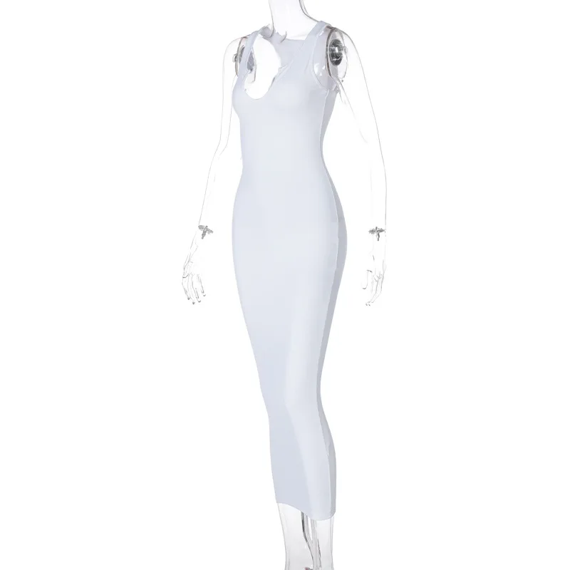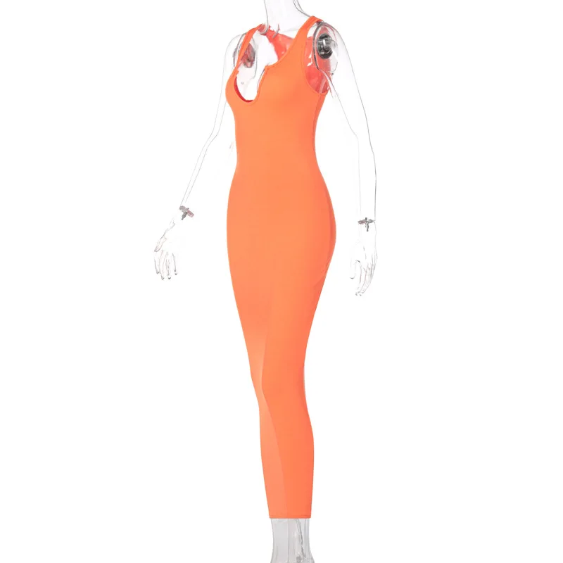 Hugcitar2021 однотонное обтягивающее платье макси без рукавов с ква...