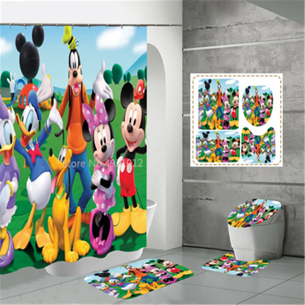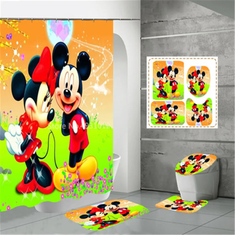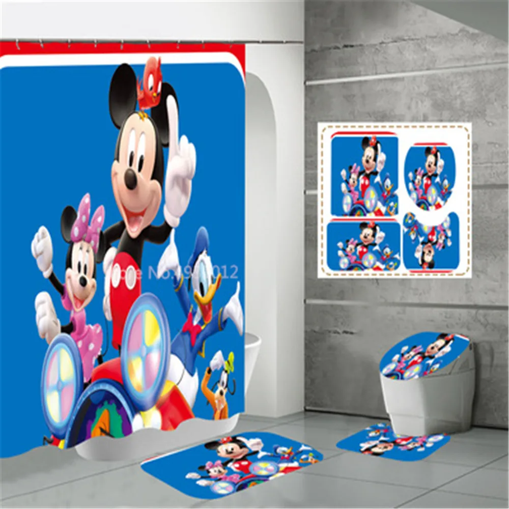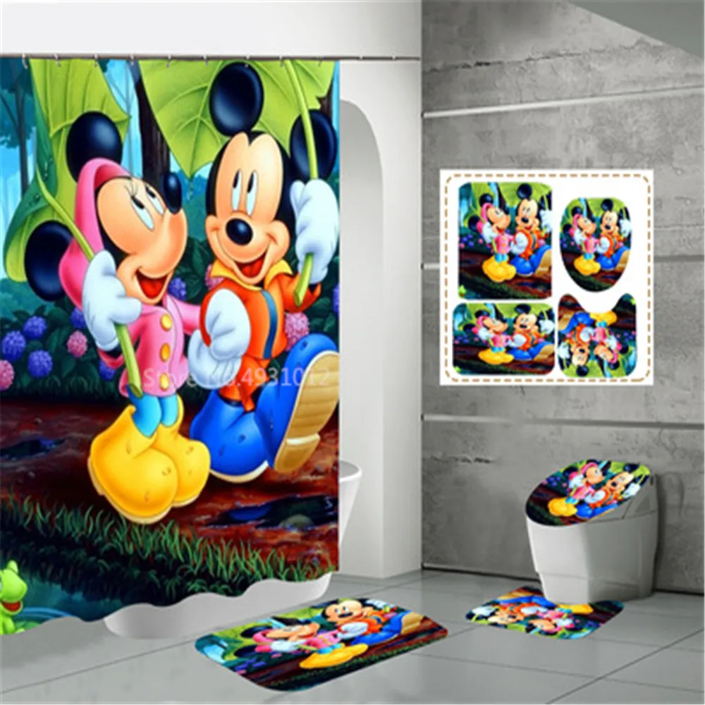 Водонепроницаемая занавеска для душа Disney с Микки и Минни Маус, набор нескользящих ковриков для ванной комнаты, коврик-подставка, крышка для унитаза, коврик, коврик