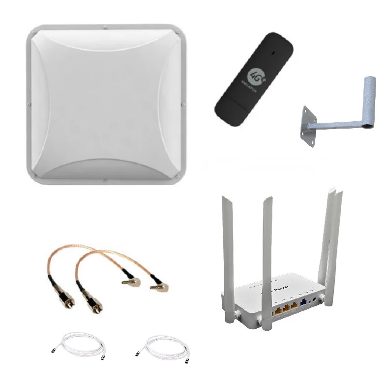 9) Роутер ZBT WE1626 + Модем Huawei E3372H-320 + Антенна PETRA BB MIMO 15дБ + Пигтейлы TS-9 2 шт. + Кабель SAT-703 2х10 метров