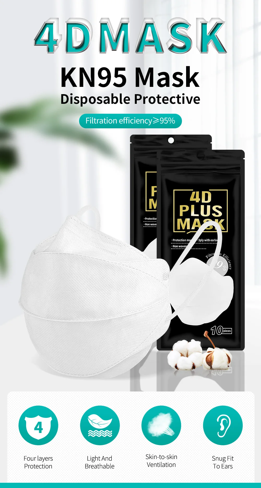 Маски для взрослых KN95 4D полное покрытие лица FFP2mask Higienicas Mascarilla FPP2 4-слойная FFP2 Mascarillas FP2 Homologadas FFP3 маска