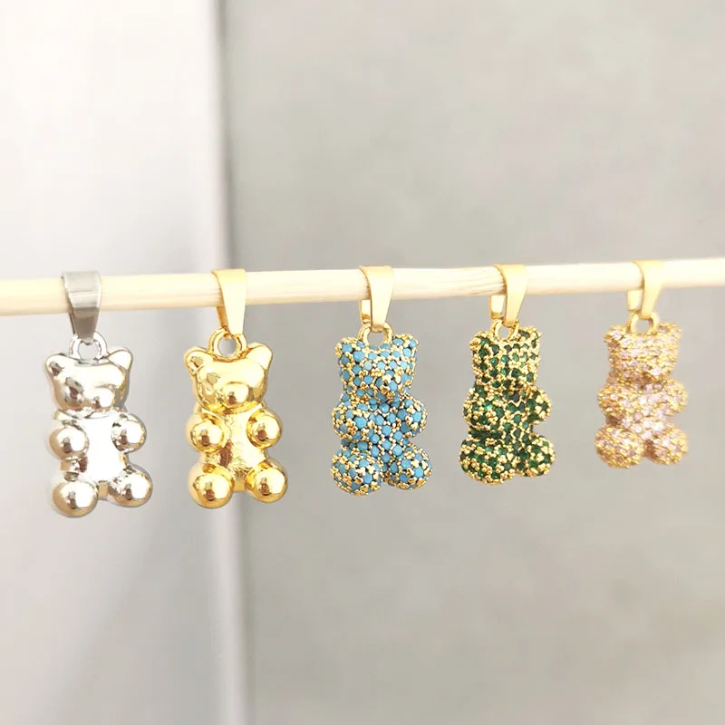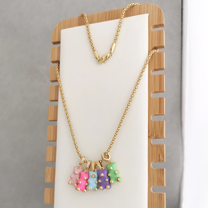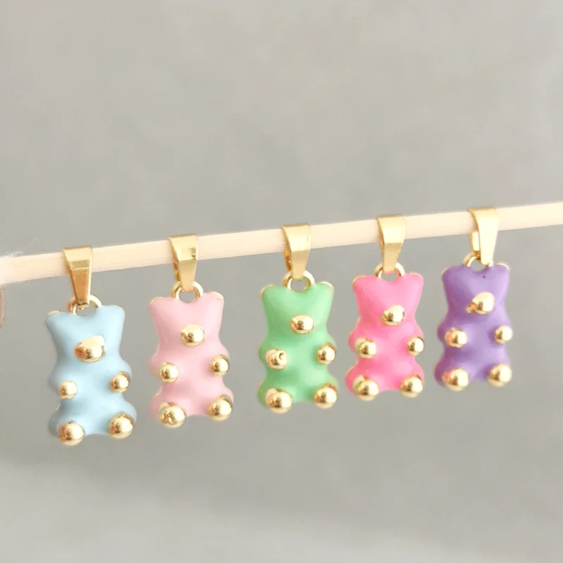 QMHJE эмалевые шармы в виде медведей карамельных цветов Очаровательное ожерелье женское колье CZ проложили неоновый зеленый ювелирный браслет Ankel Гладкий крючок
