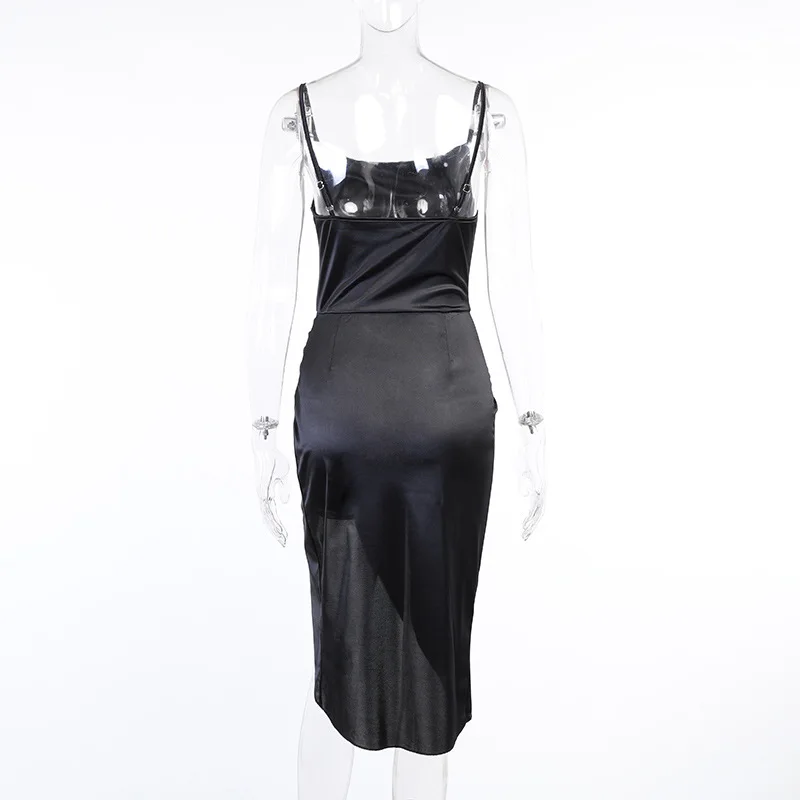 Платье женское средней длины на тонких бретельках, пикантное вечернее Клубное модное однотонное сарафан с открытой спиной, халат вечерние разрезом, на лето