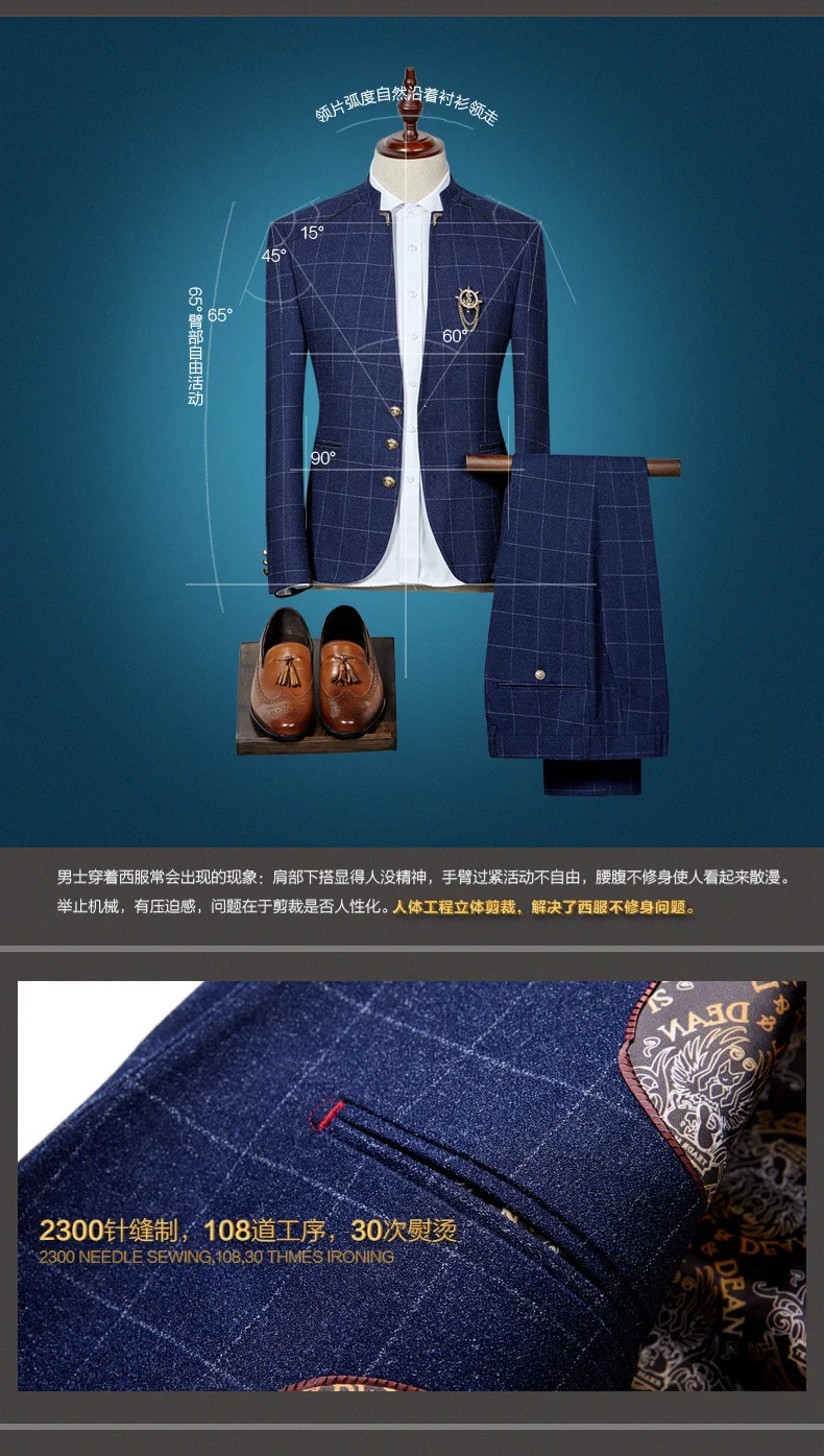Костюм жениха для брака пальто и брюки комплектМужской приталенный ...