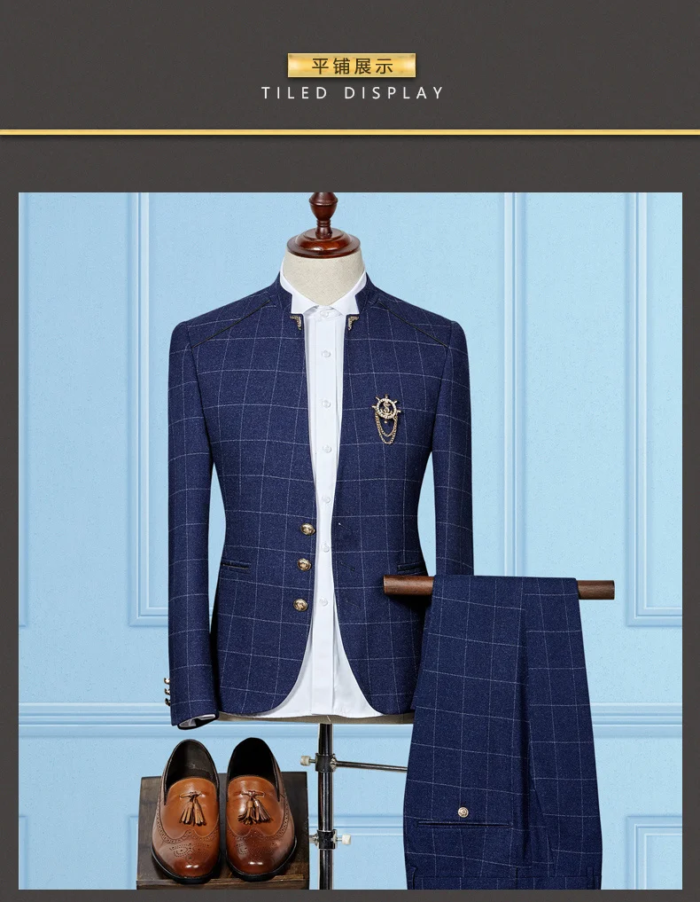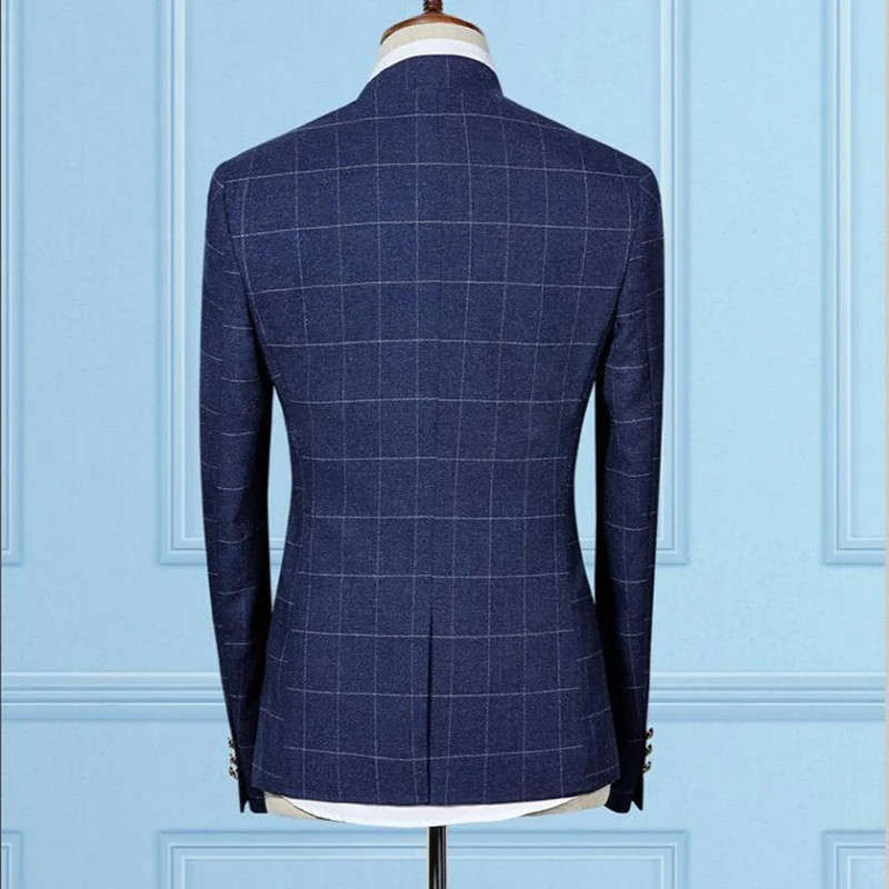 Мужской свадебный комплект из трех предметов, клетчатый синий и сер...