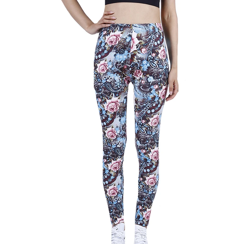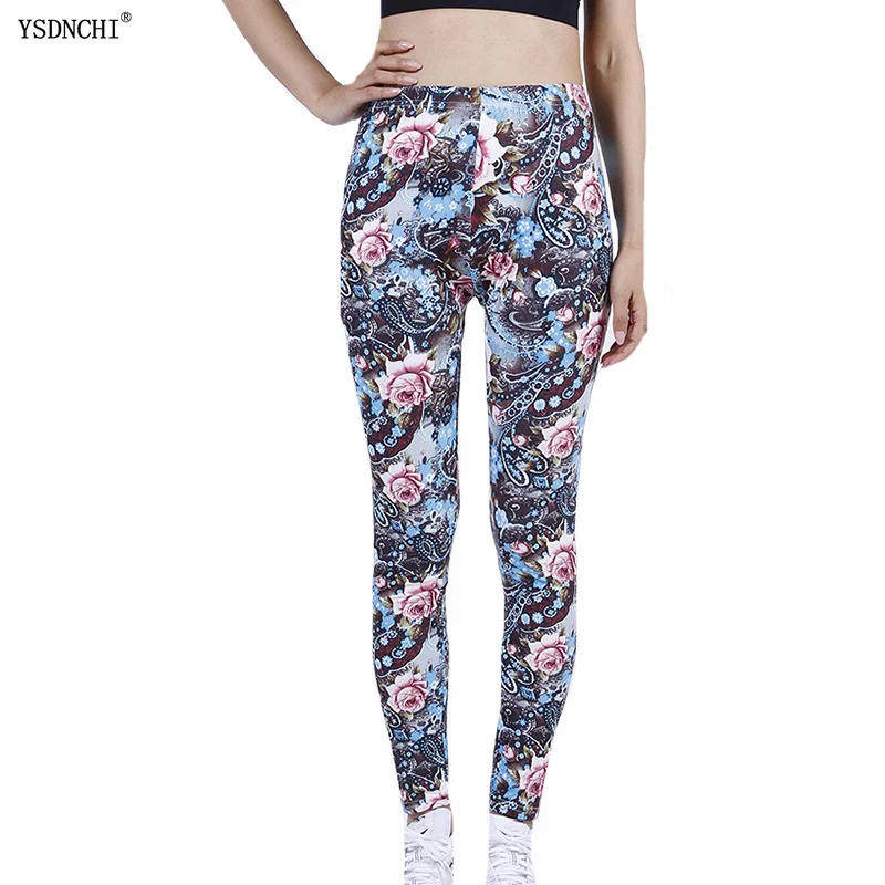 Леггинсы женские YSDNCHI, эластичные, летние, с цветочным принтом, с высокой талией