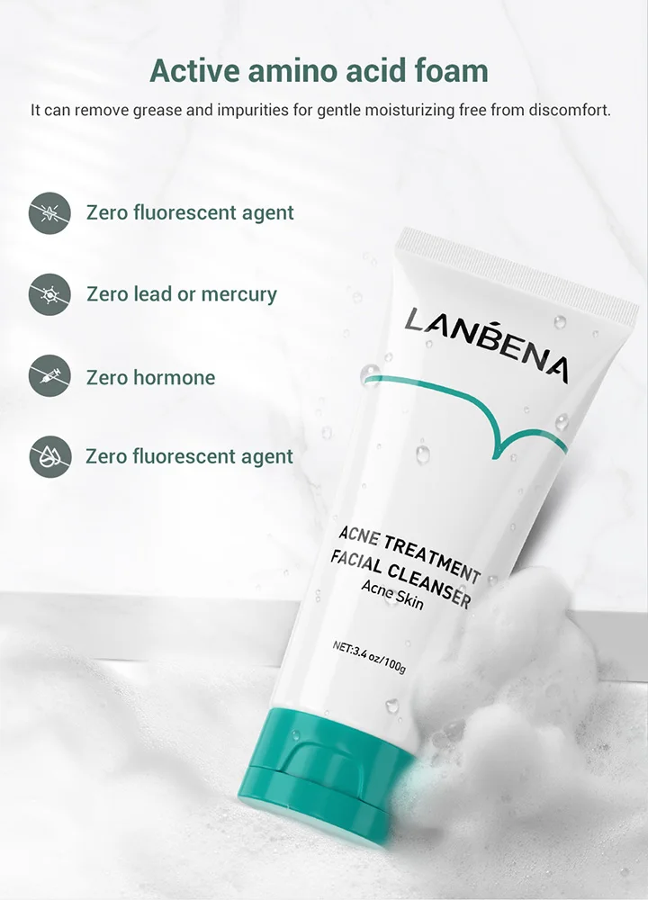 Серия LANBENA «безупречная»Средство для очищения лица от акнеС драгоценным олигопептидом, он может достичь b оттома, чтобы удалить acnesДля нежного очищения лицаКонтроль масла и удаление акне