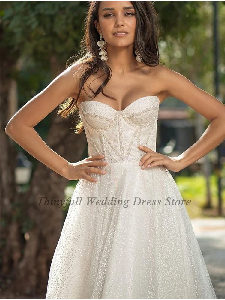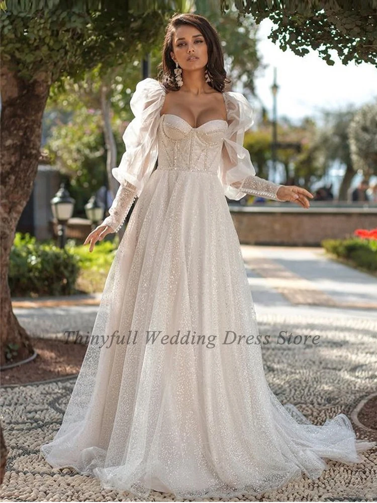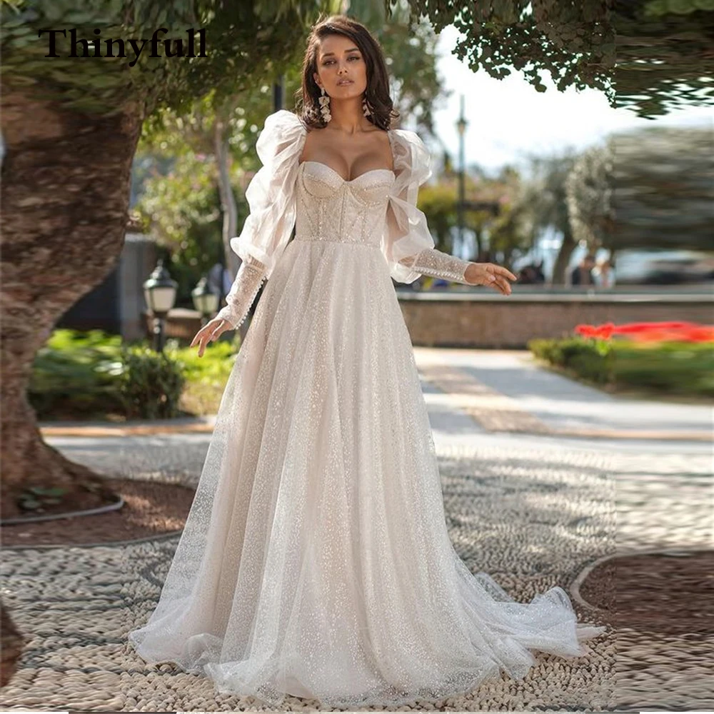 Thinyfull блестящие длинные трапециевидные свадебные платья принцессы с сердечком длинные съемные Свадебные платья с пышными рукавами Bling Vestido Blanco