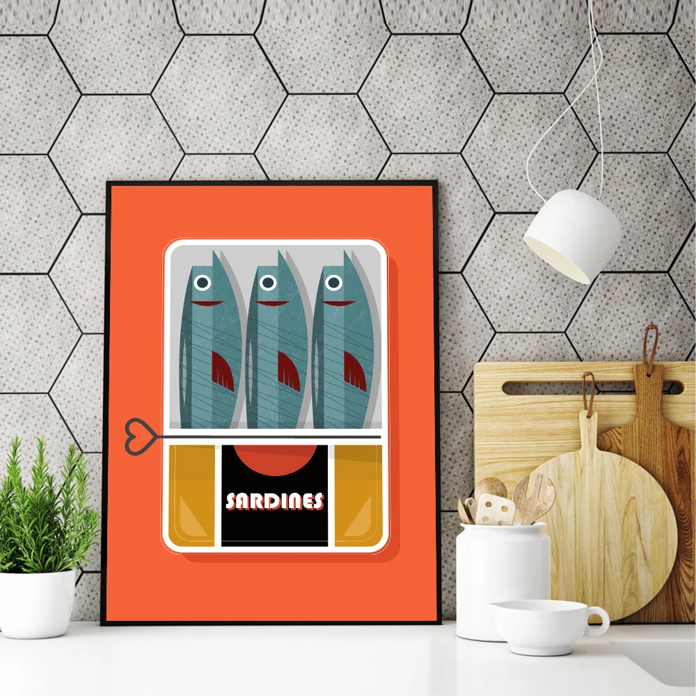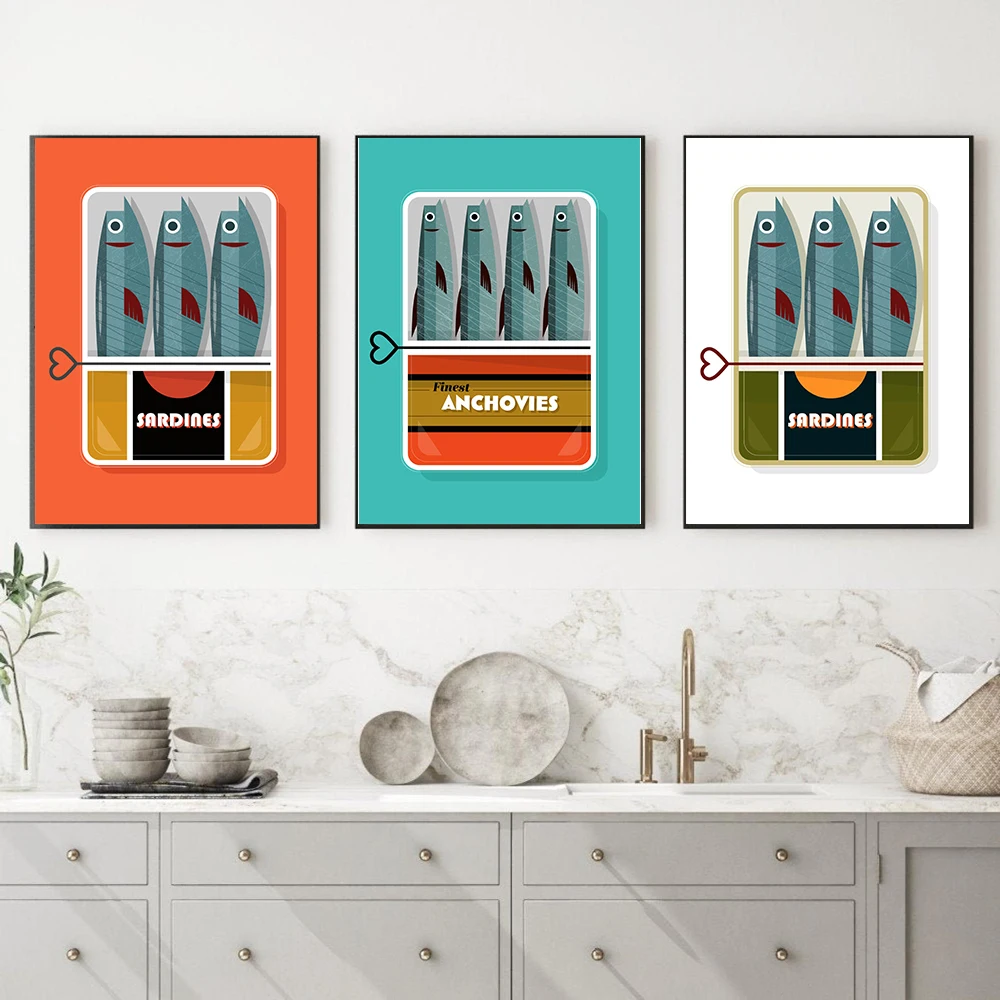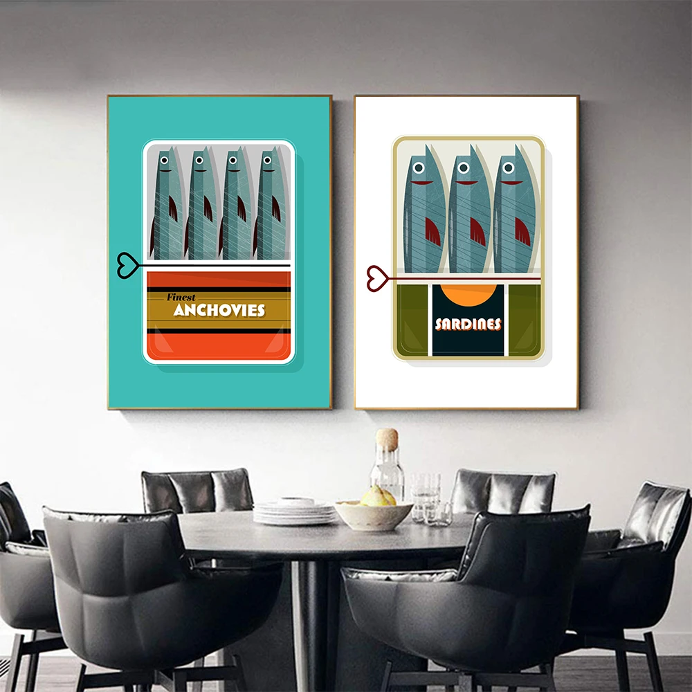 Домашний декор сардины в жестяной холсте картины классический 1920-...