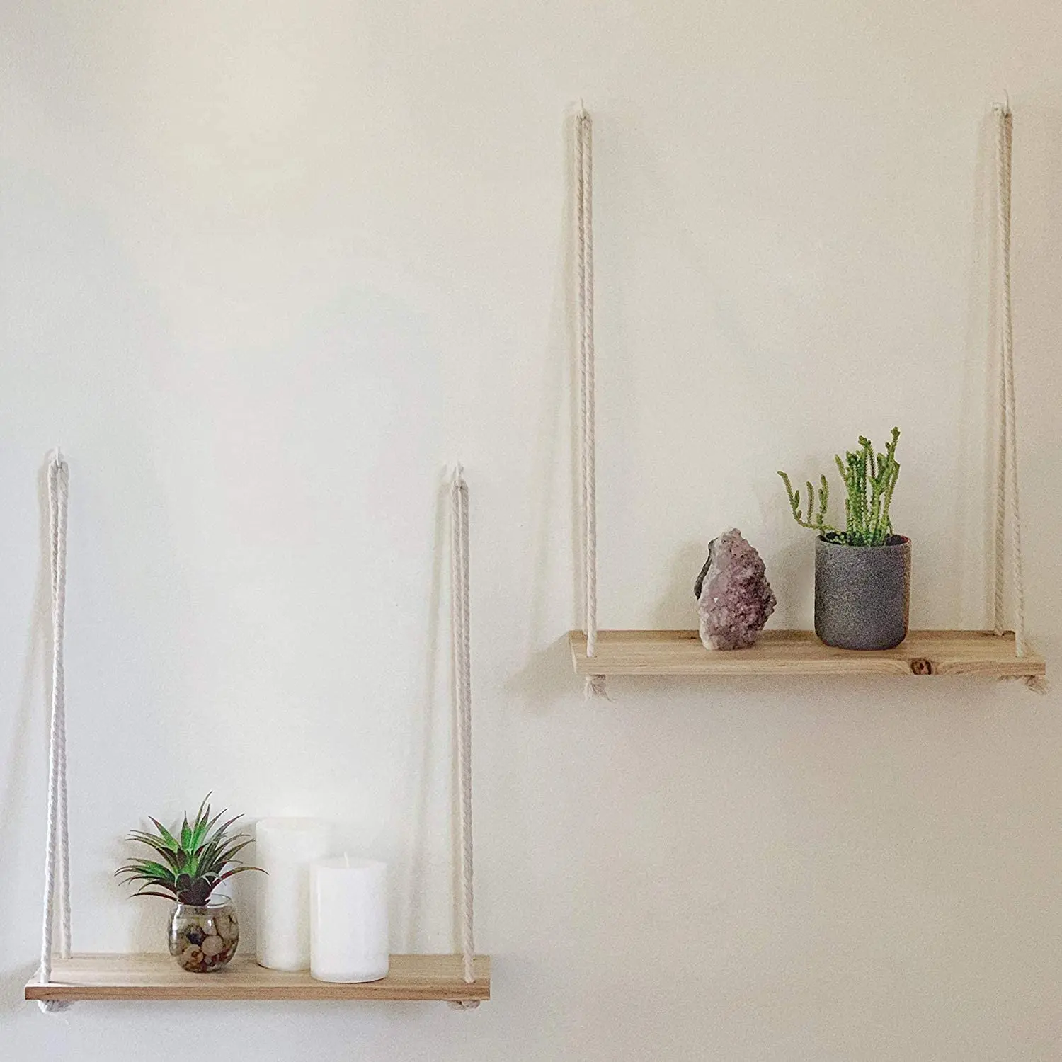 Деревянная веревка, качели, настенные Подвесные Растения, цветочный горшок, монтируемые плавающие настенные полки, скандинавский Декор для дома, простой дизайн