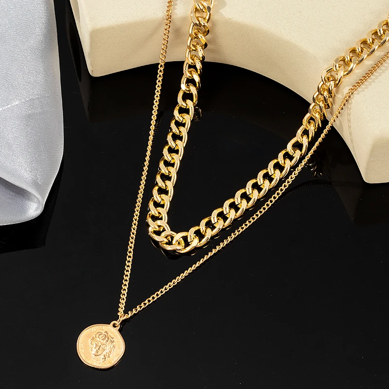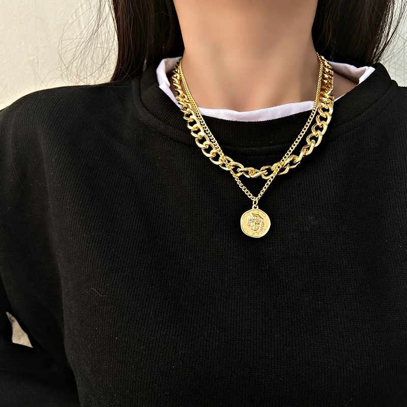 Женская многослойная цепочка на шею, винтажное толстое ожерелье зол...