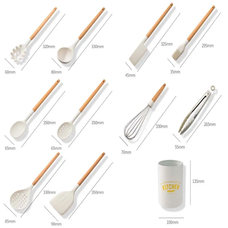 Белый набор из 11 силиконовых кухонных принадлежностей, Аксессуары ...