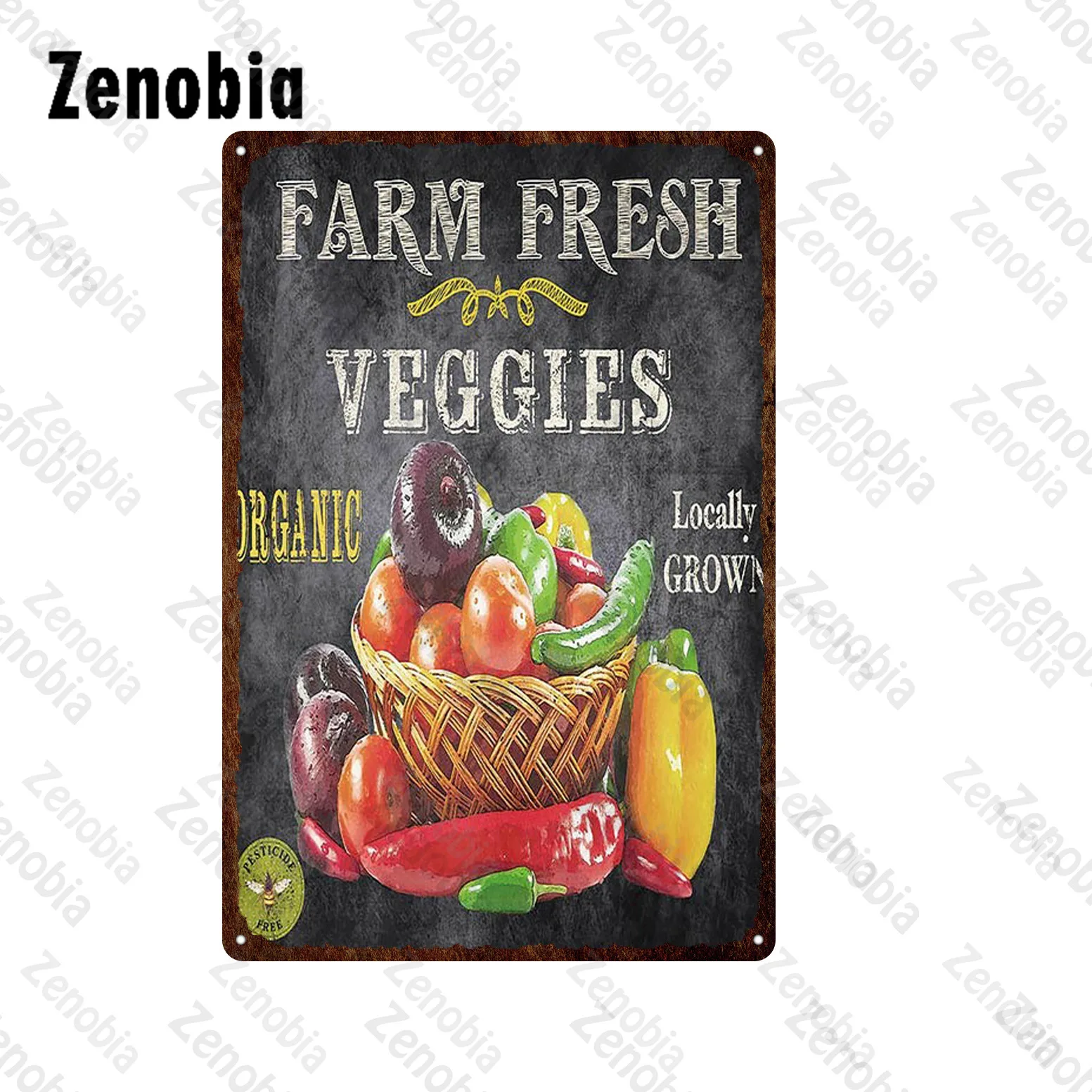 Металлические пластины с изображением свежих фруктов, табличка, виш...