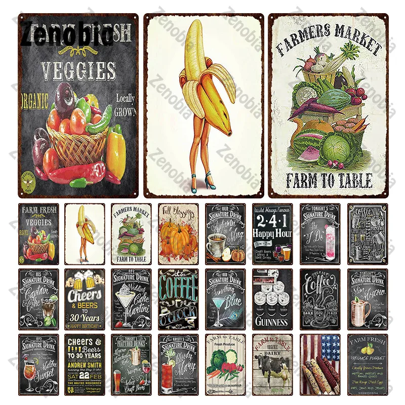 Металлический знак, Настенный декор для бара, фермерский рынок, винтажные таблички для растений, подпись, меню напитков, настенная наклейка, декоративная пластина