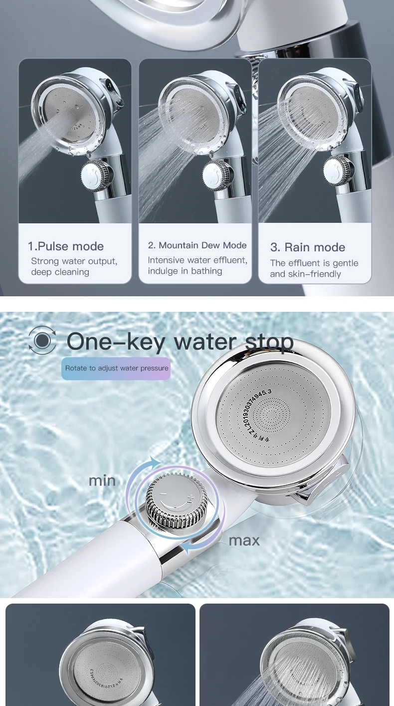 Особенности:Изготовлено из материала ABS, душевая головка легкая, прочная и долговечная.Душ не только щедрый по внешнему виду, но и практичный.С одной кнопкой Функция остановки воды, чтобы сделать его более удобным для использования.Трехстопорный режим выхода воды, который позволяет вам лучше наслаждаться удовольствием от принятия душа.Вы можете настроить подходящий режим в соответствии с вашими требованиями к душе.