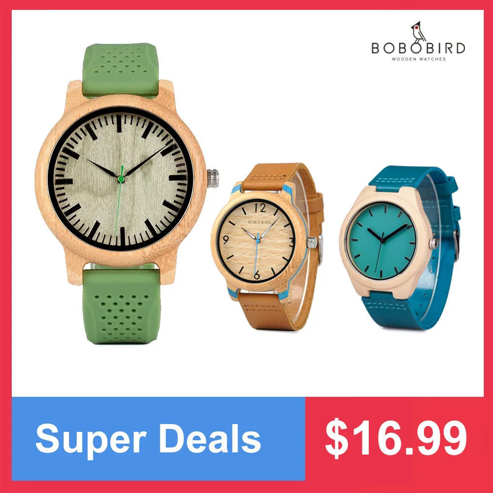 Деревянные часы для мужчин и женщин, универсальные бамбуковые часы, деревянные кожаные кварцевые наручные часы, часы женские, отличный подарок BOBO BIRD