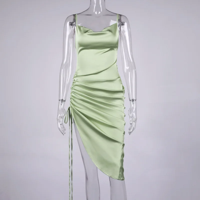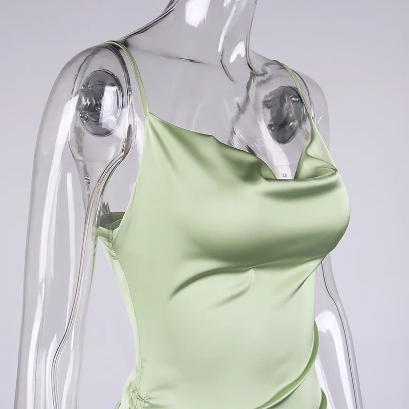 Платье-Макси женское летнее на тонких бретельках с рюшами и открытой спиной