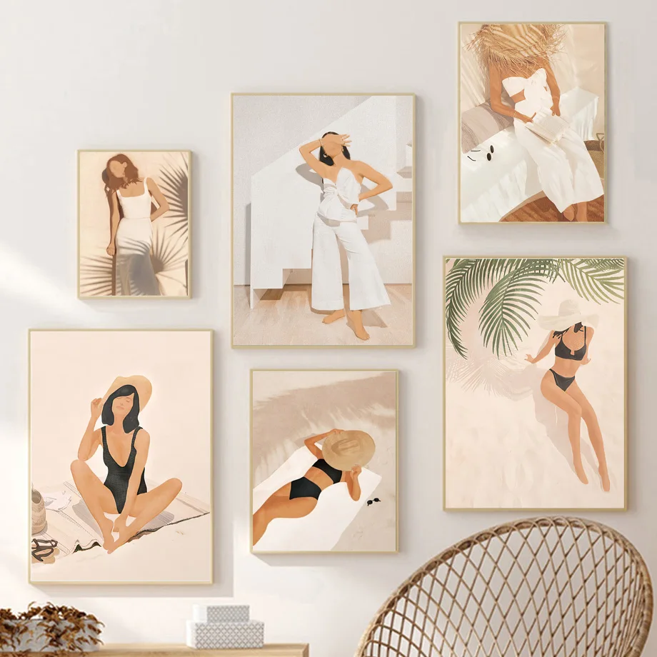 Винтажные пляжные плакаты Кактус в стиле бикини, северные плакаты и принты, настенные картины для женщин, спальни, домашний декор, настенная Картина на холсте
