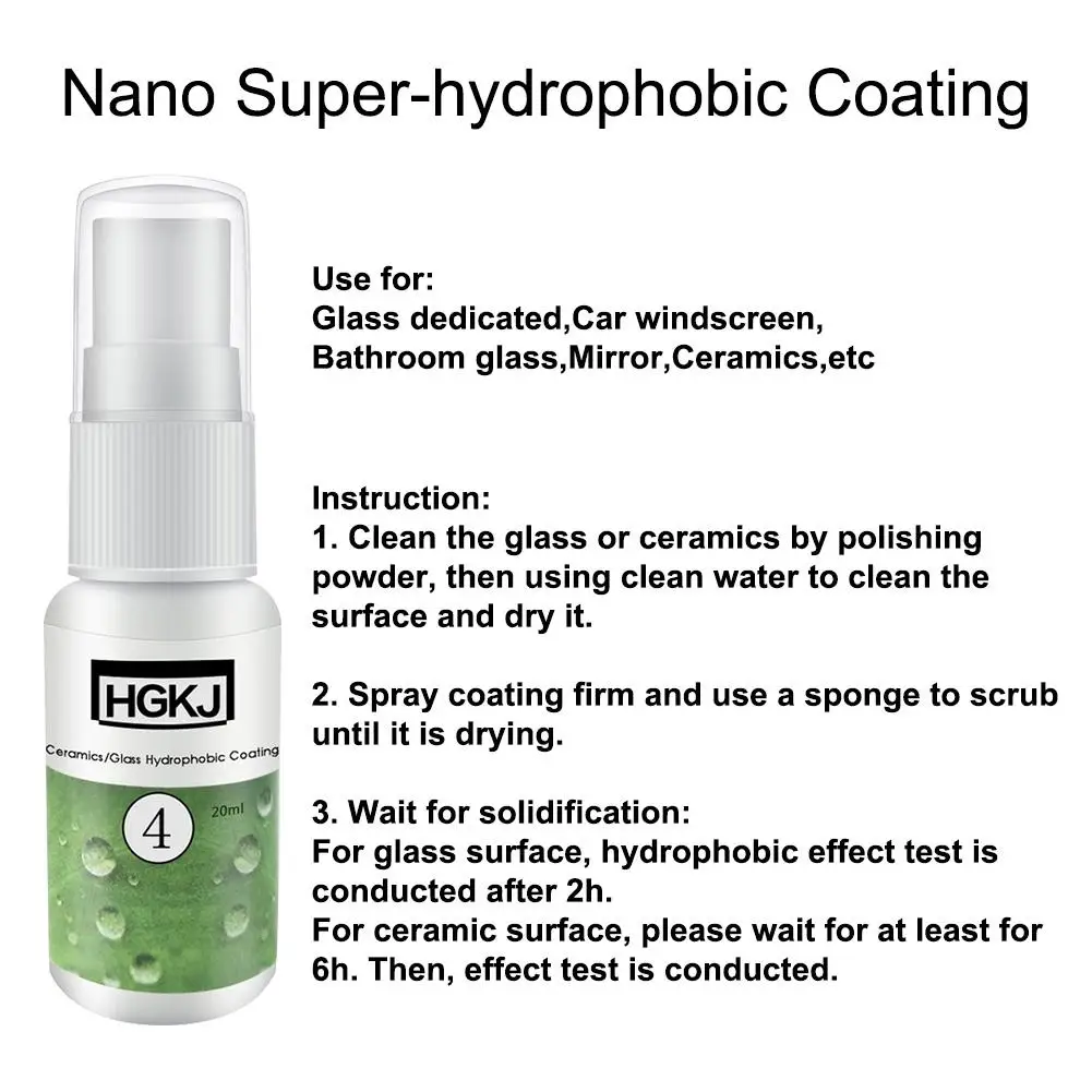 HGKJ-4-20ml автомобильное средство от дождя, многофункциональное керамическоестеклянное нано-гидрофобное покрытие для лобового стекла, непромокаемое средство, спрей