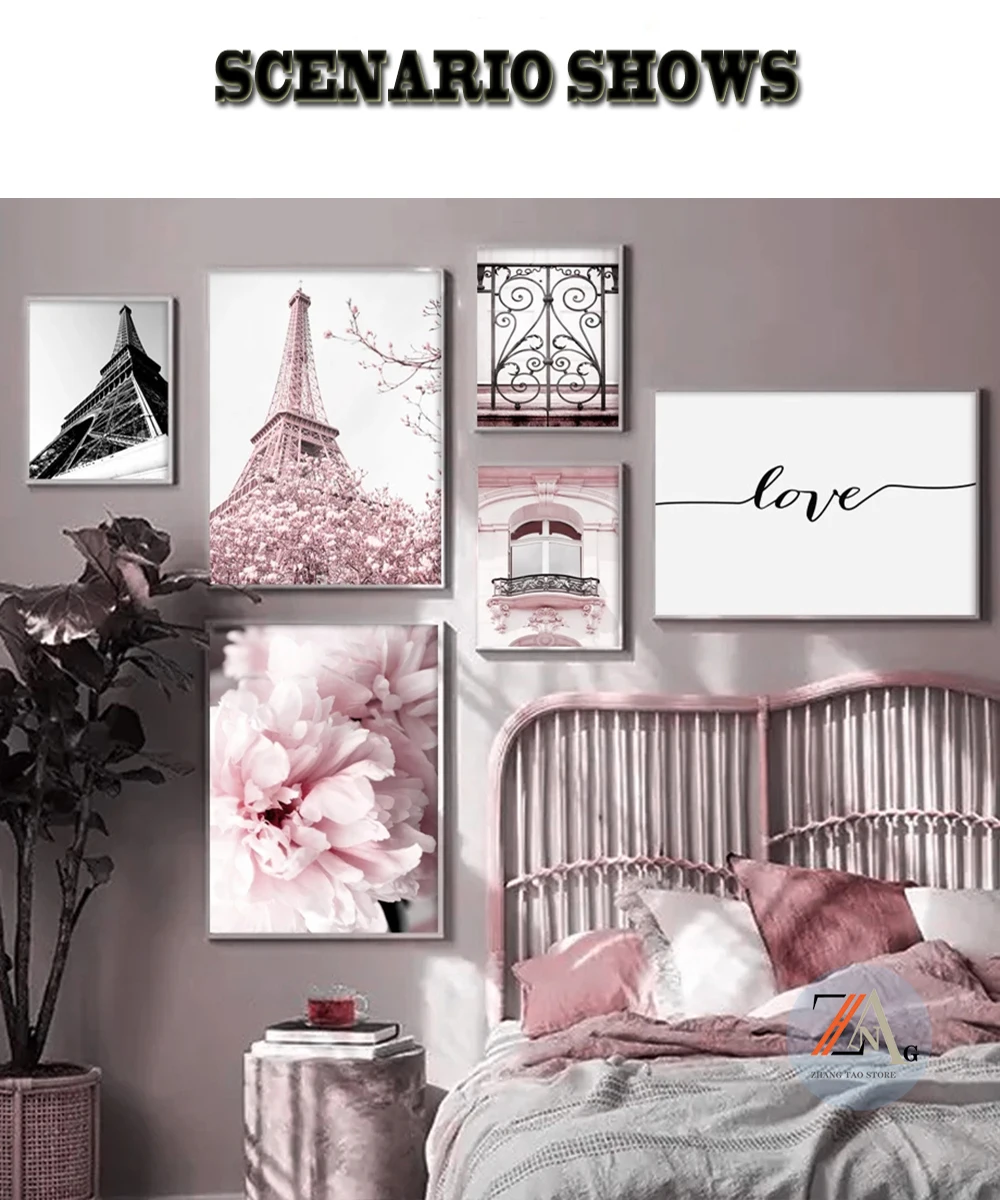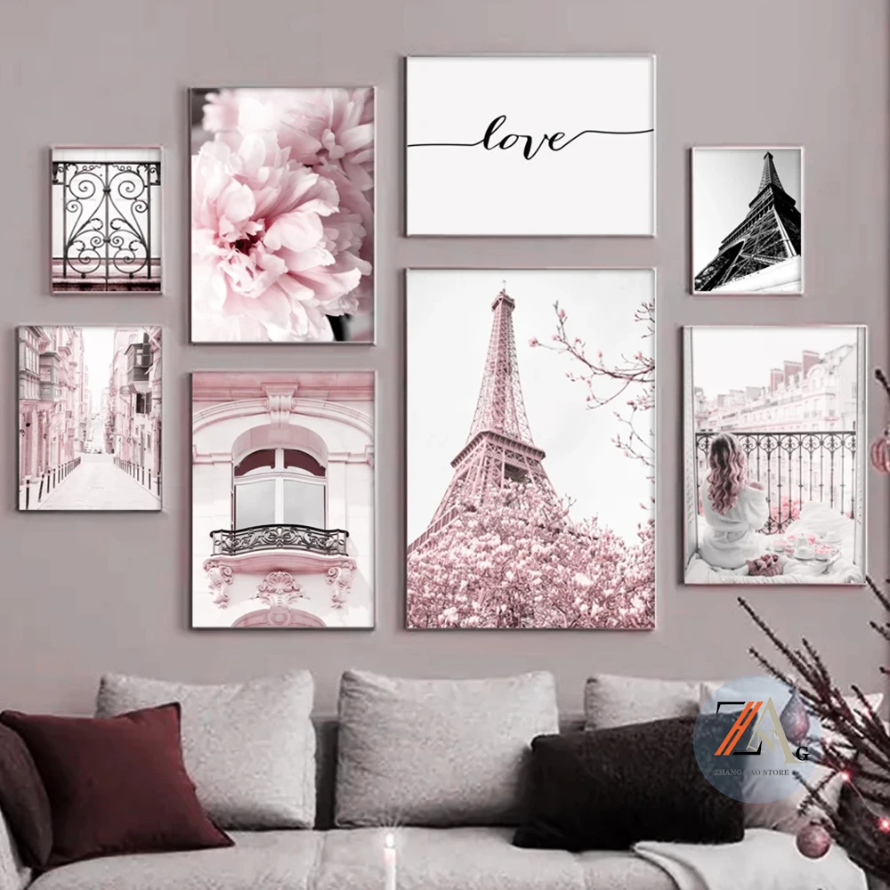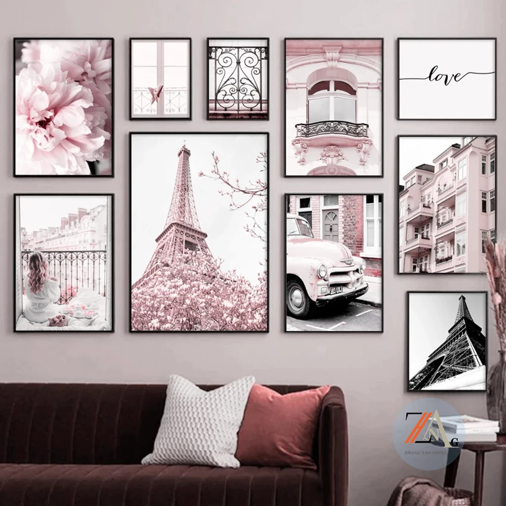 Настенная картина с изображением Эйфелевой башни, розового пиона
