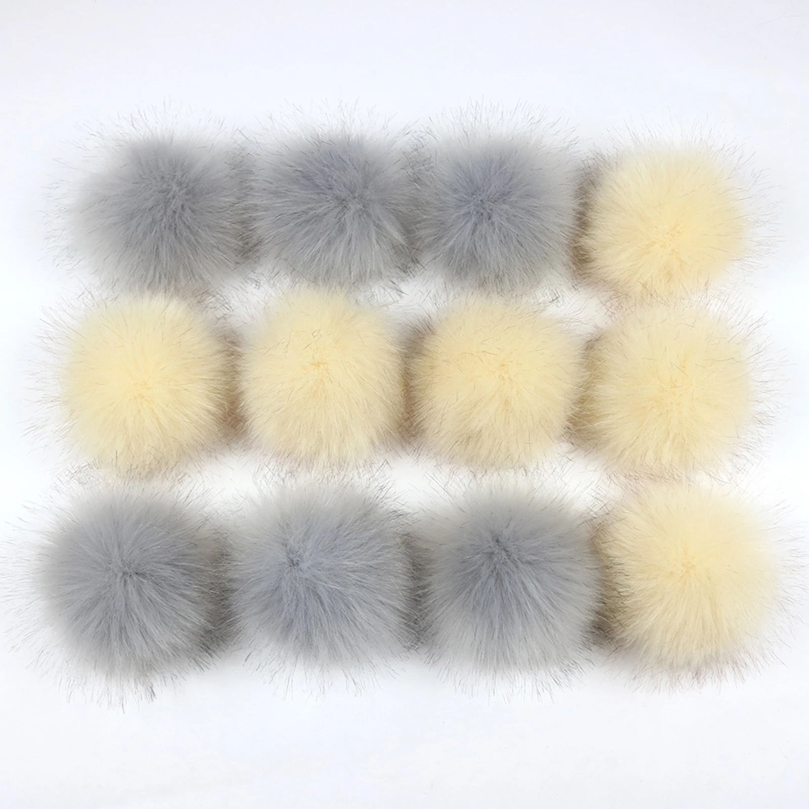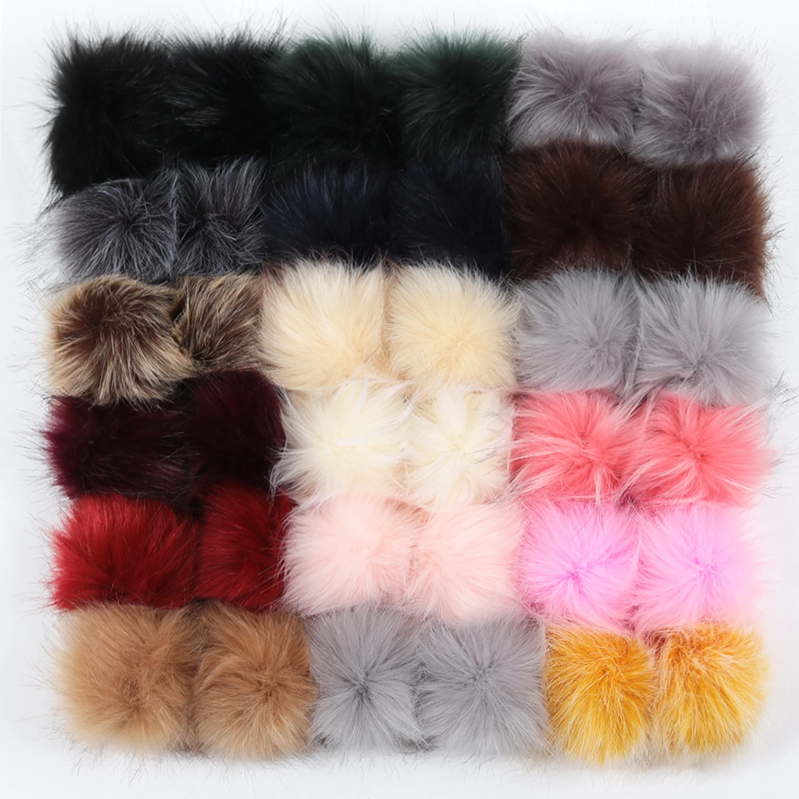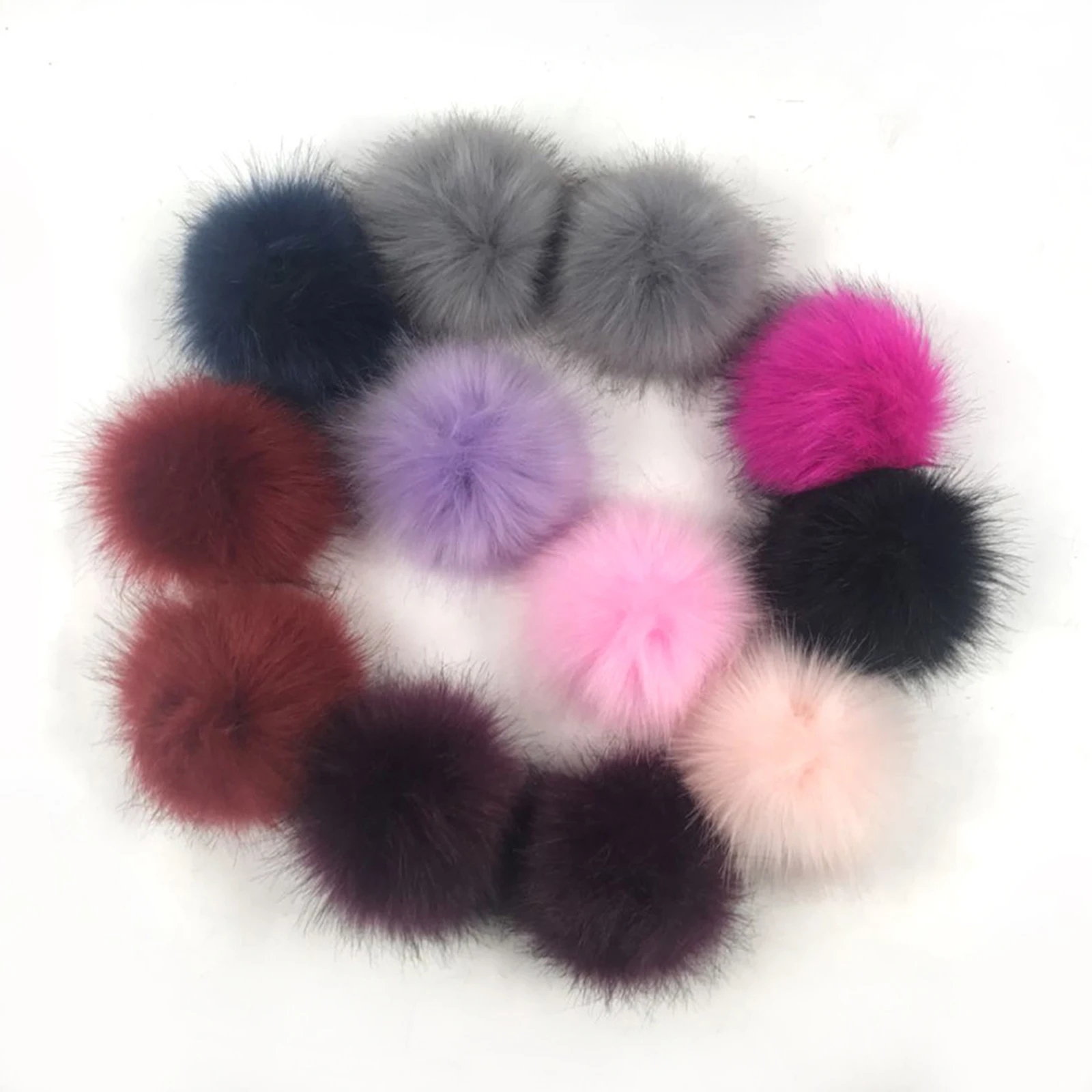 Помпон из искусственного меха для самостоятельной сборки, 12 шт., шапка из натурального Лисьего меха, помпон из шариков, шапка ручной работы с большим помпоном из волос с резиновой лентой диаметром 10 см