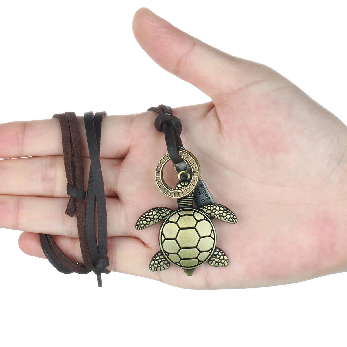 Винтажная бронзовая подвеска в виде черепахи, раньше, ожерелья в форме монеты для мальчиков, панк, Регулируемая кожаная веревка, цепочка, ювелирные изделия