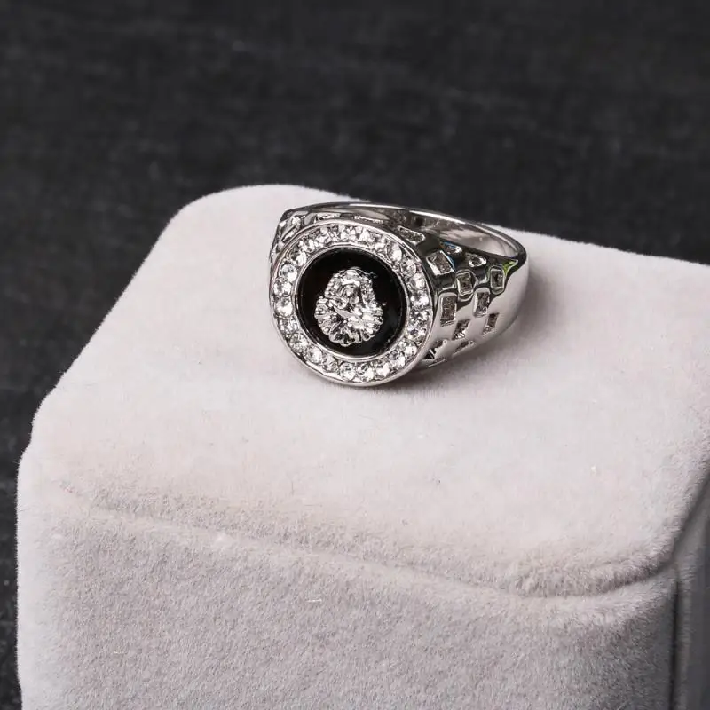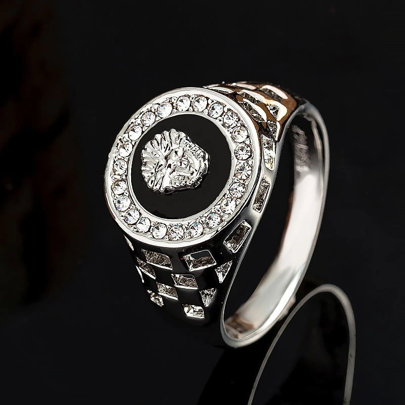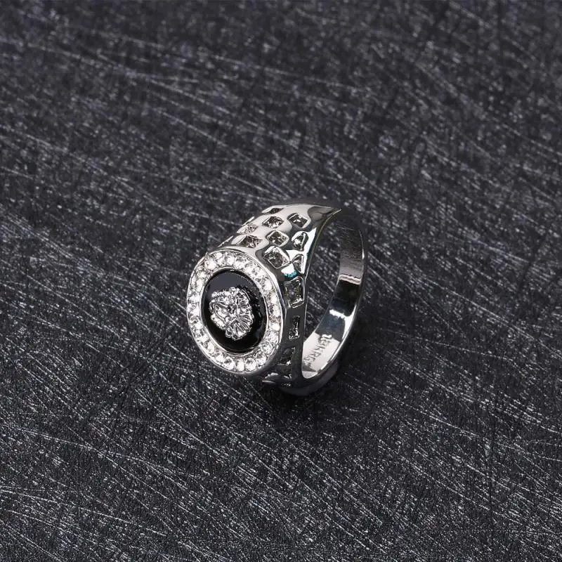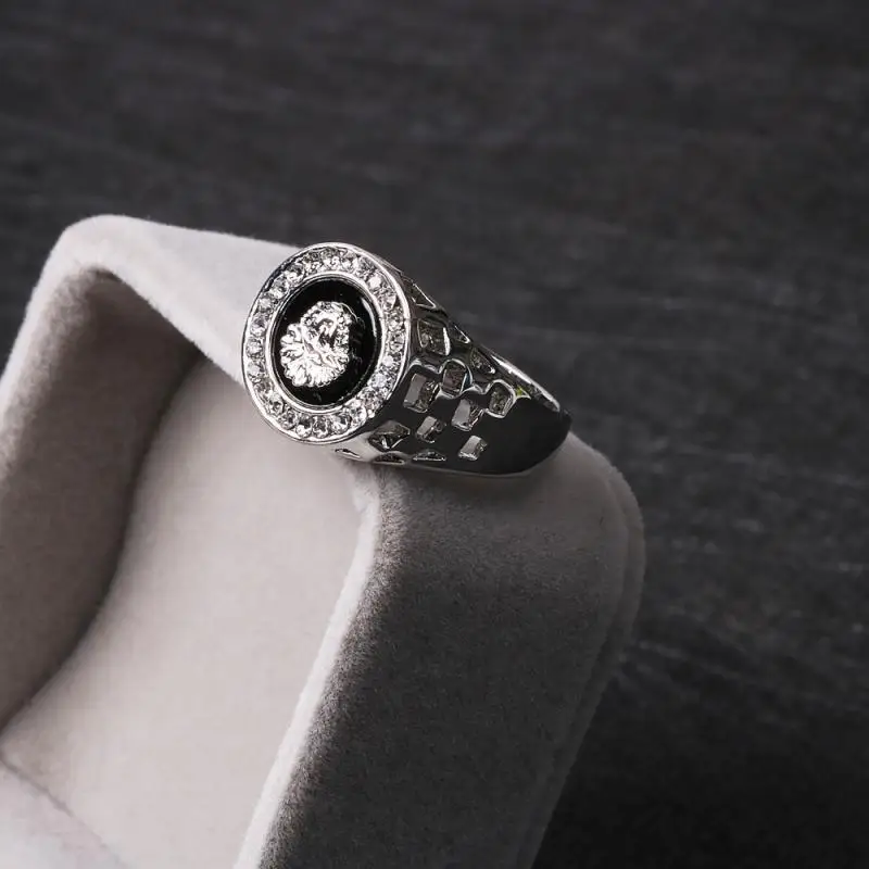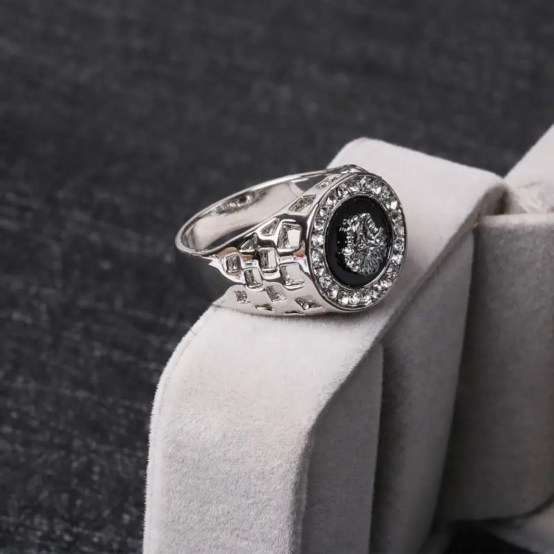 Кольцо с инкрустацией в виде головы льва в стиле хип-хоп