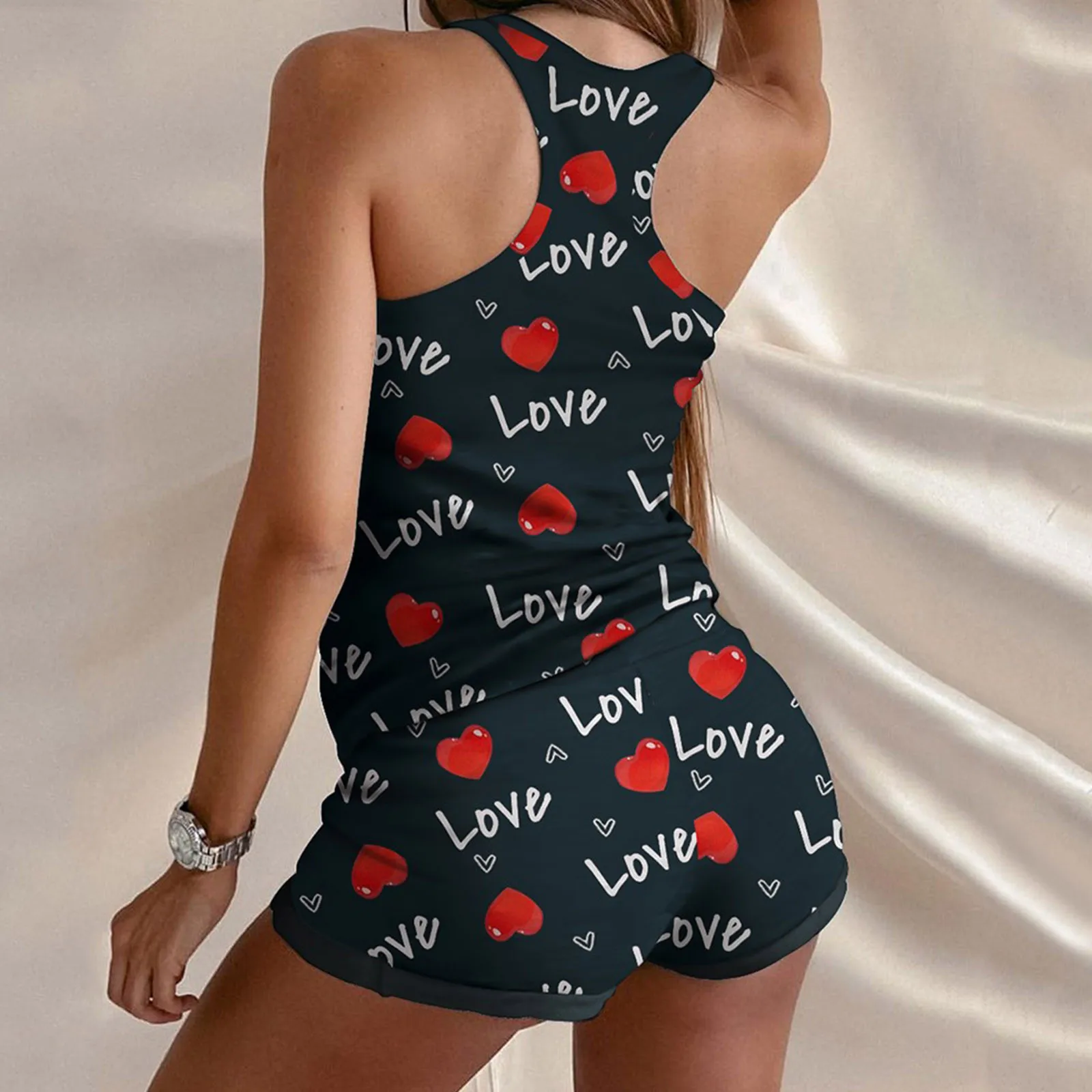 Пижама женская, розовая, с квадратным вырезом, без рукавов, с принтом сердца, привлекательные пижамные комплекты, 2021