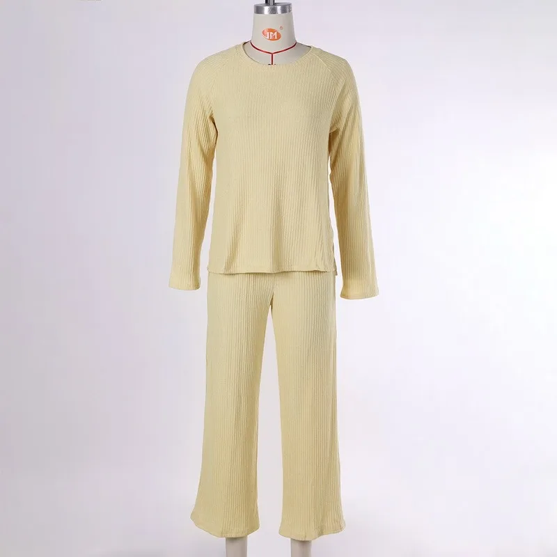 Женский трикотажный спортивный костюм, свитер с круглым вырезом и широкие брюки, повседневный комплект из 2 предметов, Осень-зима 2021