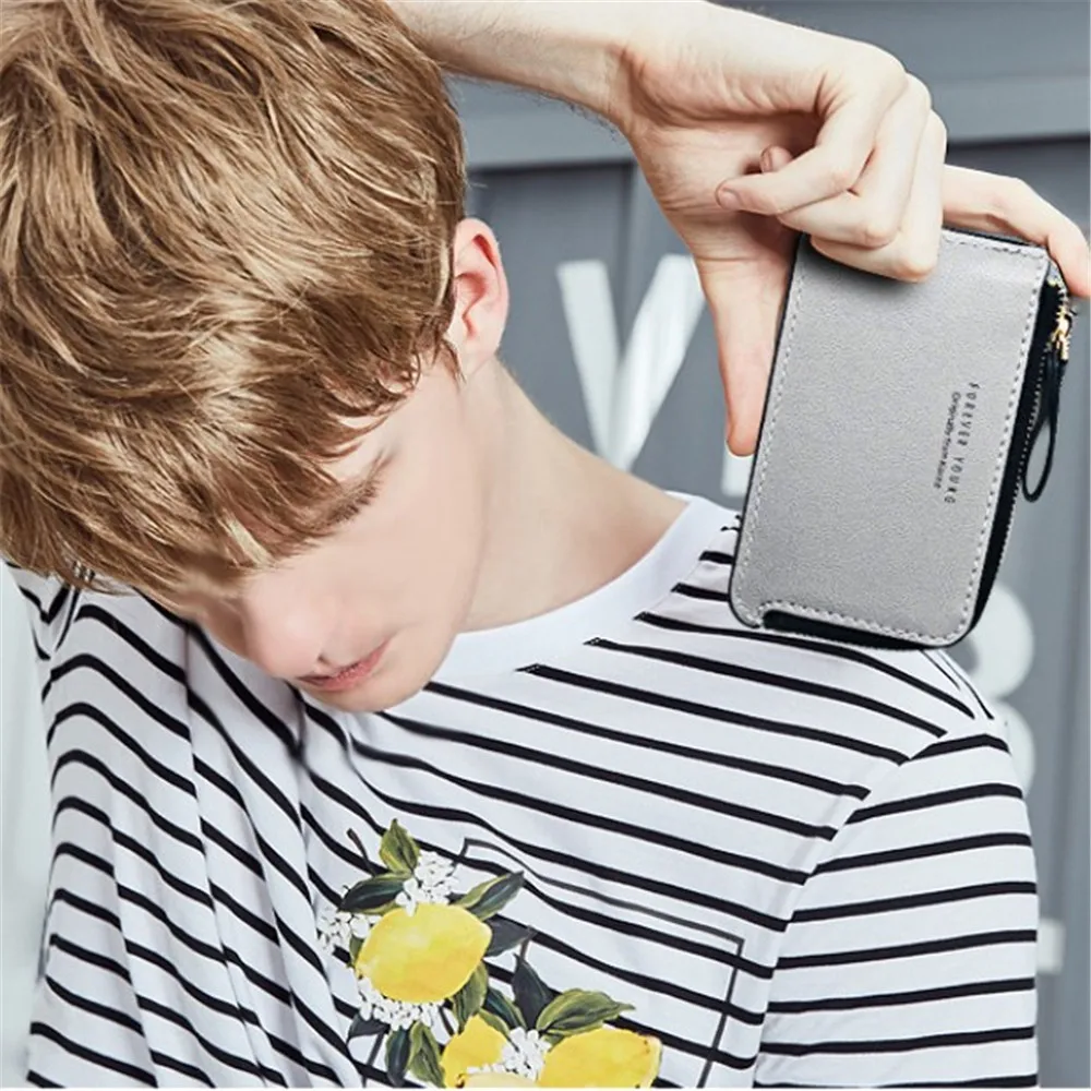 Корейский модный тонкий мужской кожаный маленький кошелек, держатель для кредитных карт, кошелек для мужчин, маленький кошелек для наличных и монет на молнии, мужской кожаный кошелек
