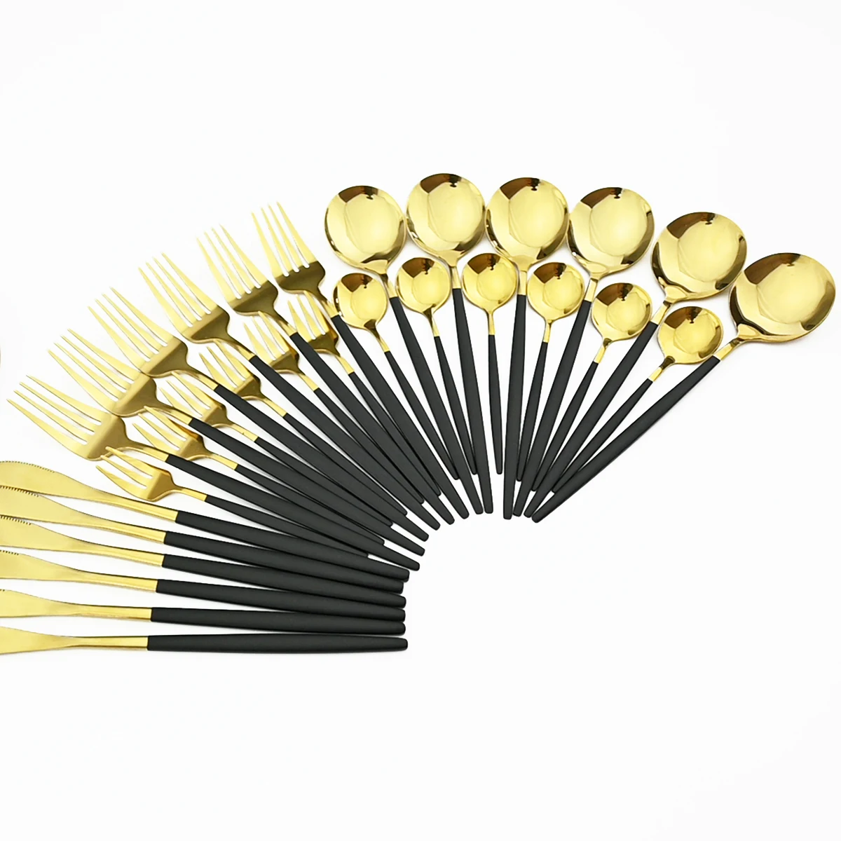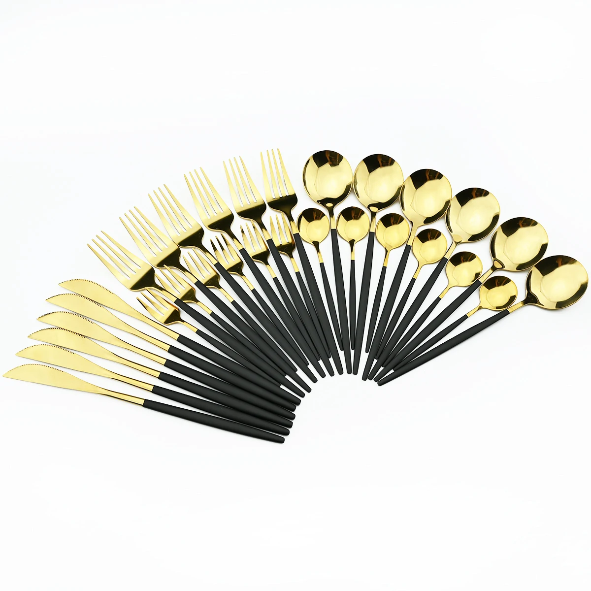 Набор столовых приборов из нержавеющей стали черного и золотого цвета, 30 шт.