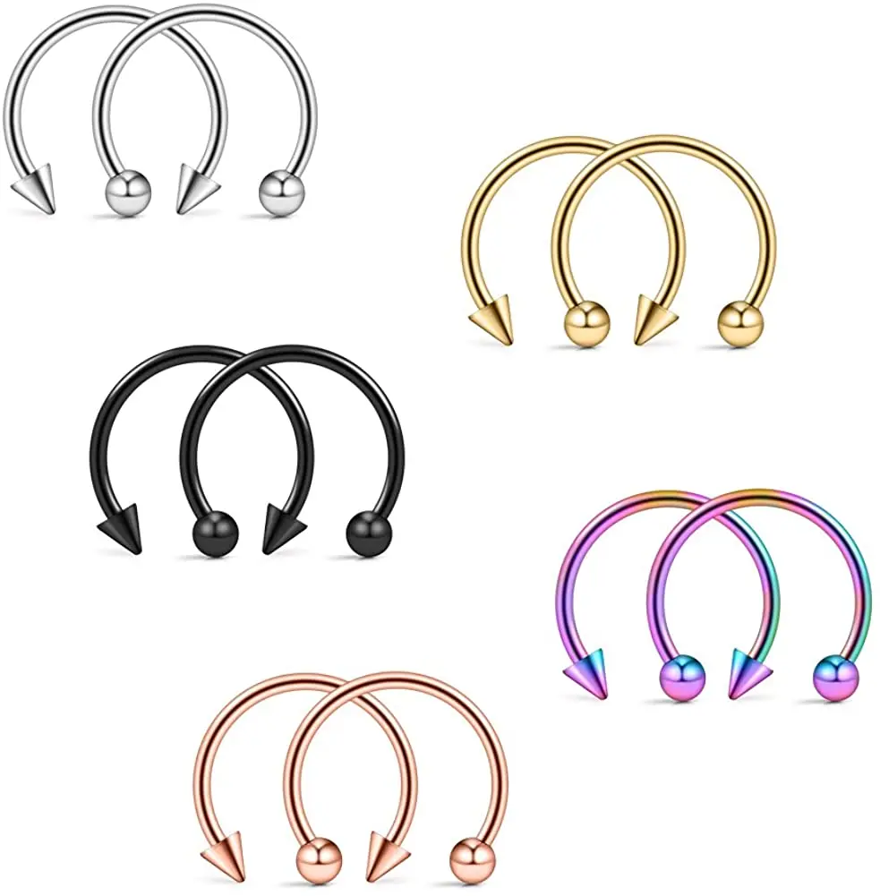 2 шт. конический шип Нержавеющаясталь Подкова фальшивый нос кольцо ...