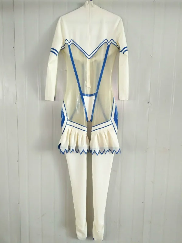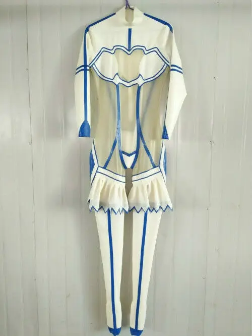 Фетиш латексный резиновый женский белый боди сексуальный комбинезон на молнии оборки женский костюм 0,4 мм