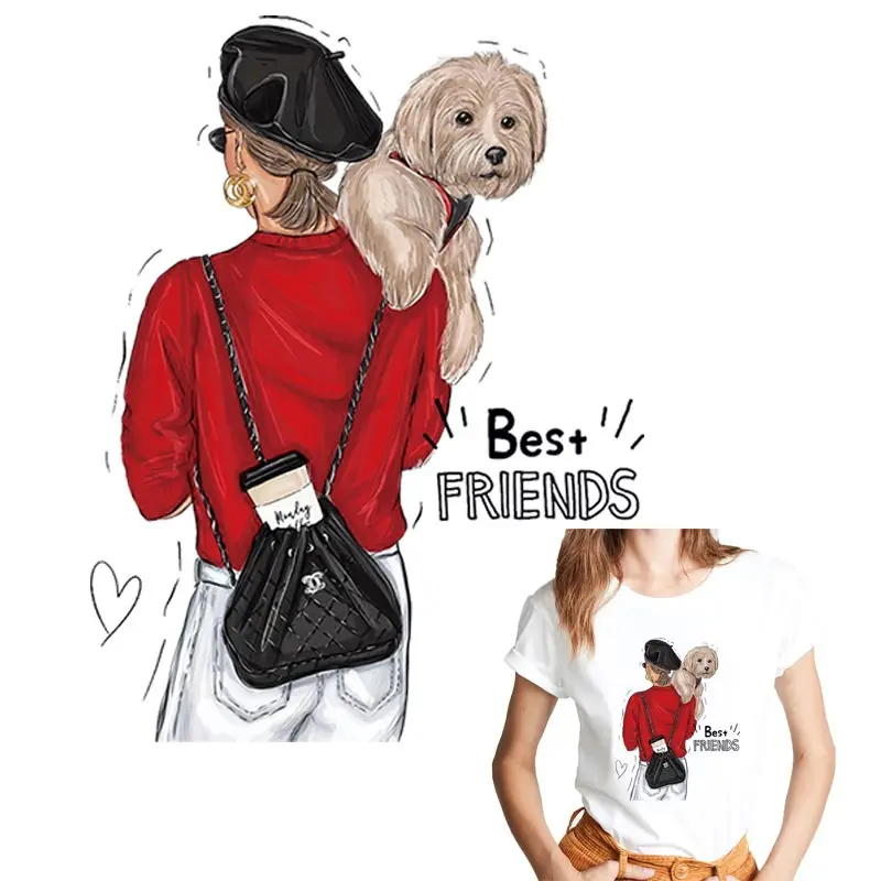Термонаклейки на футболку с изображением девушки и собаки, самодельные нашивки с аппликацией