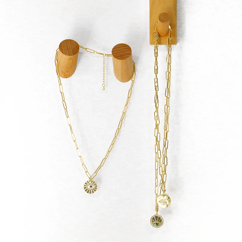 Ожерелье FLOLA с золотистыми звеньями, ожерелье с голубым сглаза, медные циркониевые Длинные ожерелья с белым кристаллом для женщин, ювелирные изделия nkew28