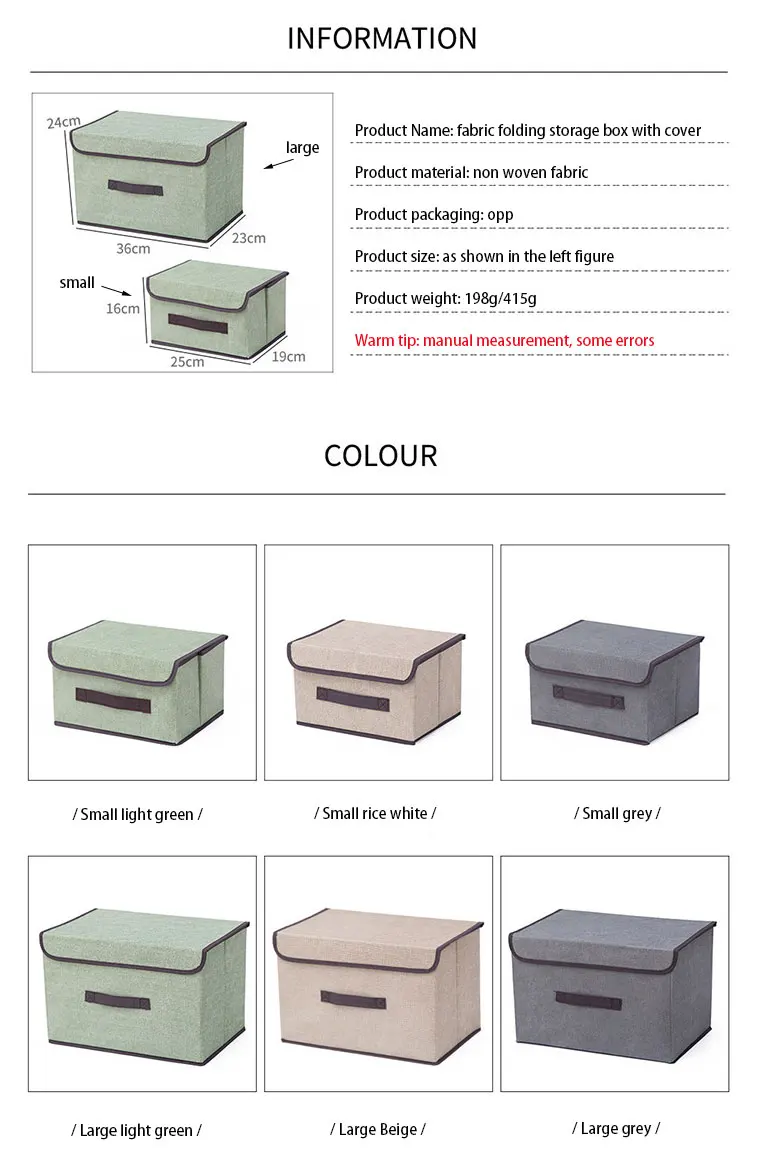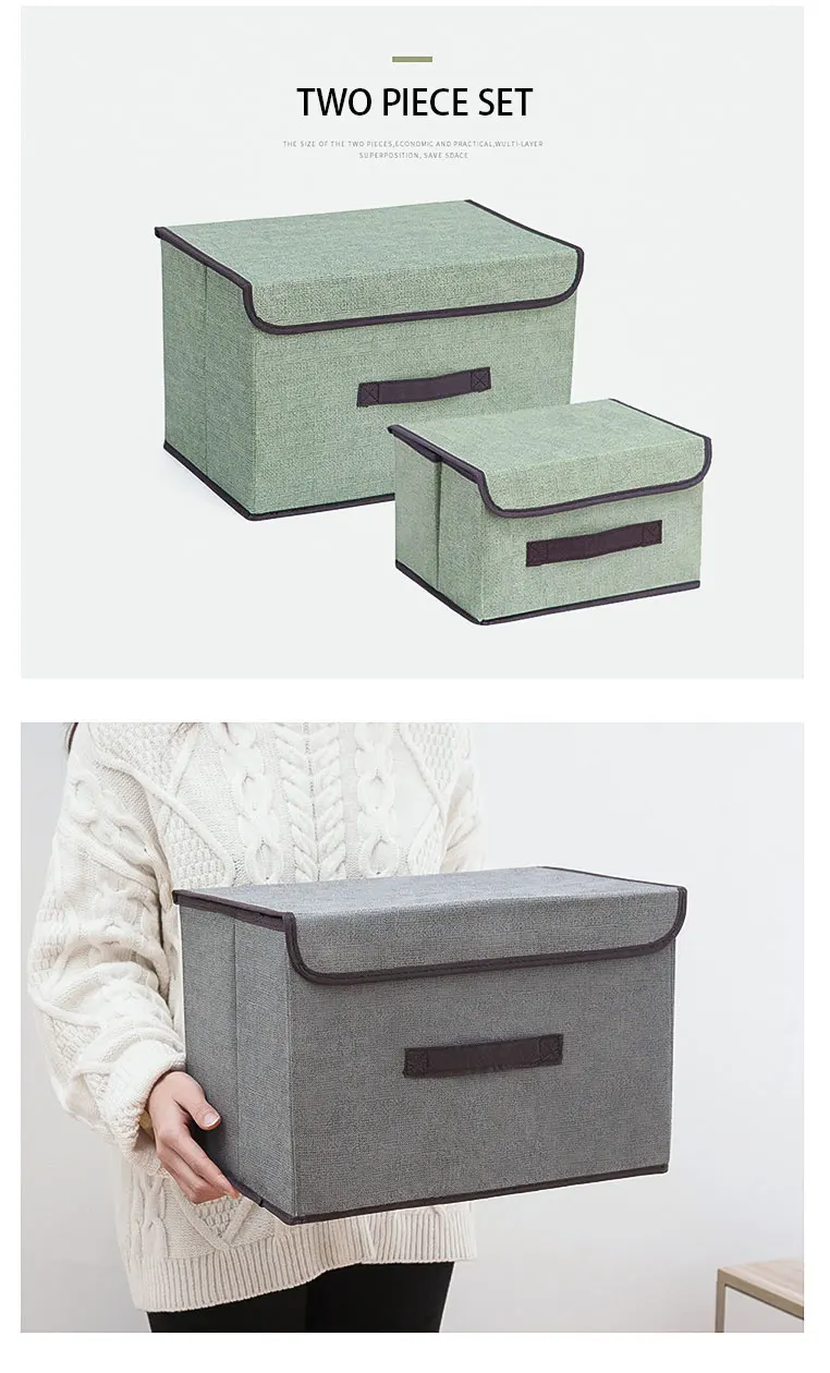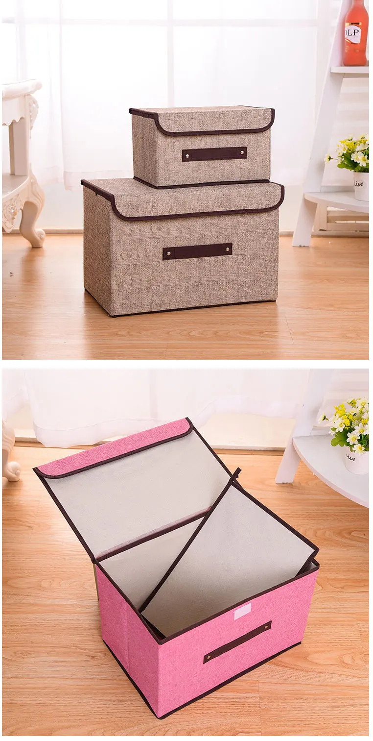 Ящик для хранения из хлопка и льна с крышкой, 2 размера, органайзер...