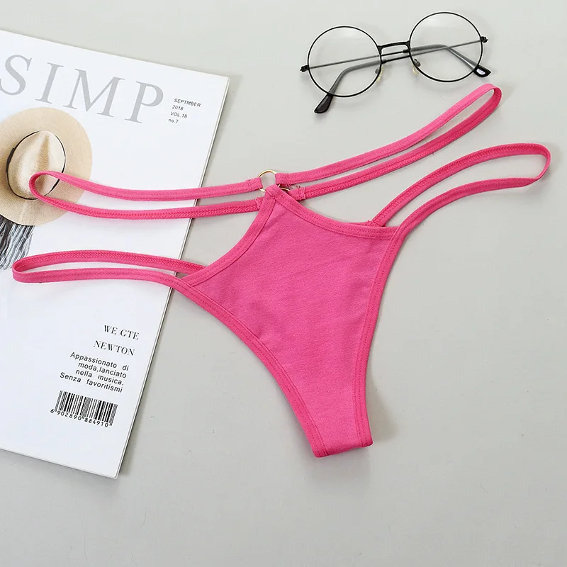 Трусики-стринги женские хлопковые с низкой посадкой, однотонные