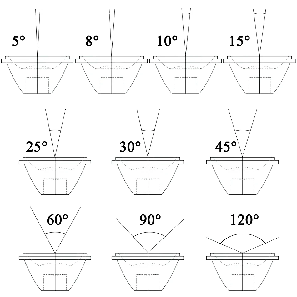Угол объектива: 5/8/15/25/30/45/60/90/120 градусов