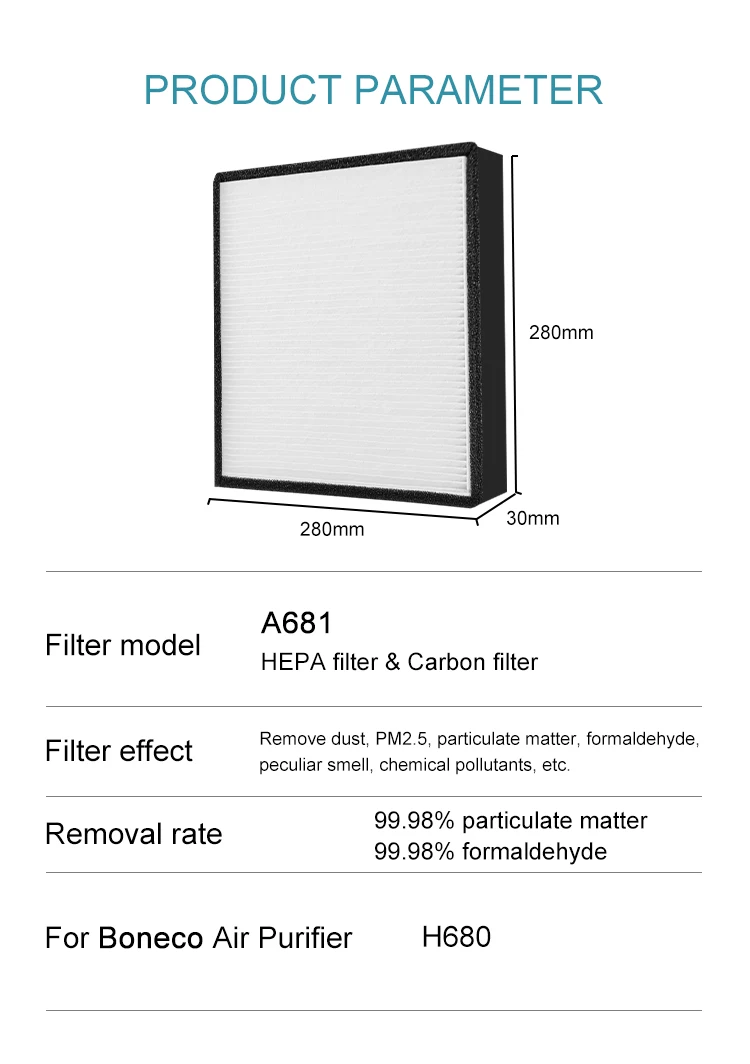 Угольный фильтр A681 HEPA для гибридного увлажнителя и очистителя воздуха BONECO, сменный высокоэффективный фильтр частиц H680