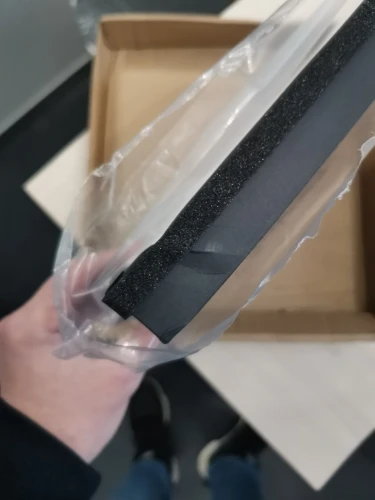 пришел в картонной упаковке. фильтр: спереди бумага hepa сзади гранулы угольные. при расположении вертикально, как в boneco 680. ссыпаются вниз, оставляя сверху промежутки пустые, т.е. часть фильтруемого воздуха через угольные гранулы не проходит)) (на фото видны эти просветы) ну и поролончик наклеен по бокам а не во внутрь