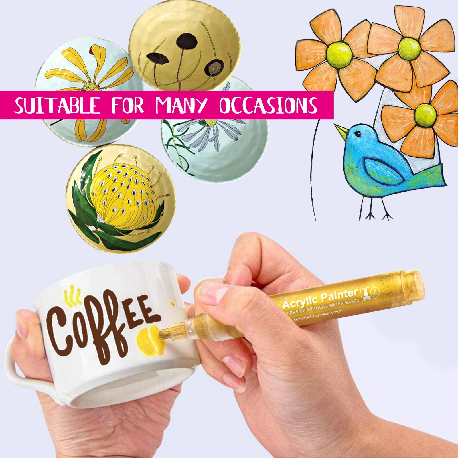 Средний Наконечник: 5 ммАкриловые чернила: на водной основеДоступно в 12 цветахПодходит на поверхности: керамические кружки, белые или черные бумажные скрапбукинги, фотоальбом, ткань, холст, обувь, камни, металл, эмаль, дерево, кожа, пластик и т. Д.