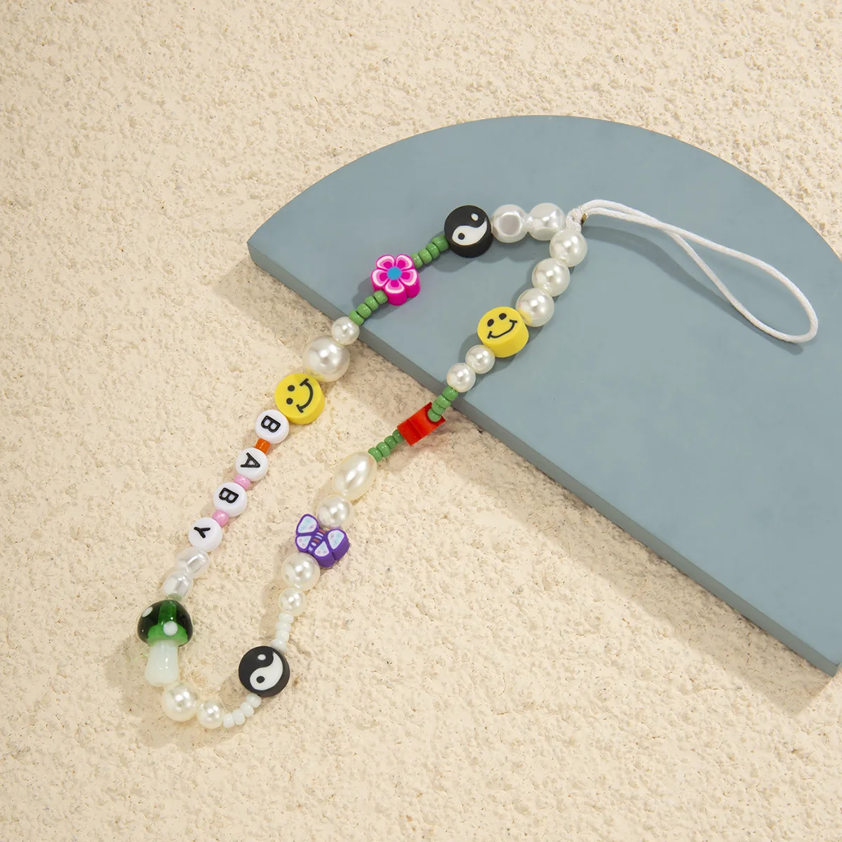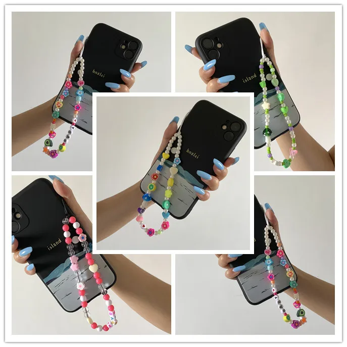 Цепочка для телефона с надписью любовь, из бисера, Мягкая Керамическая цепочка, чокер для телефона для девочек, ремешок Мобильный телефон, подарок для женщин