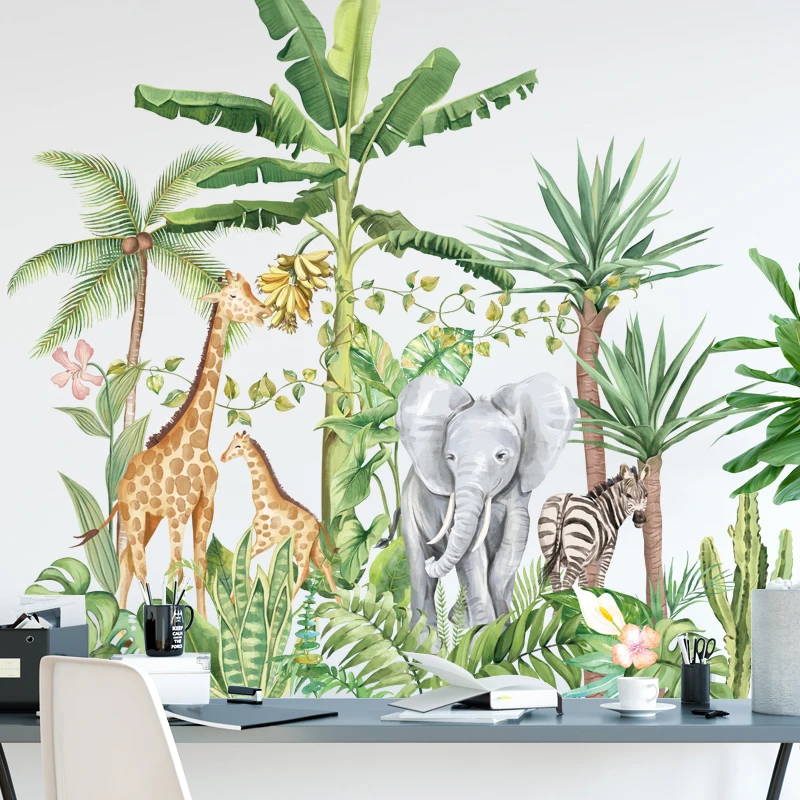 Съемный тропический лес зеленые растения s зебра жираф слон Наклейка на стену для гостиной спальни украшение
