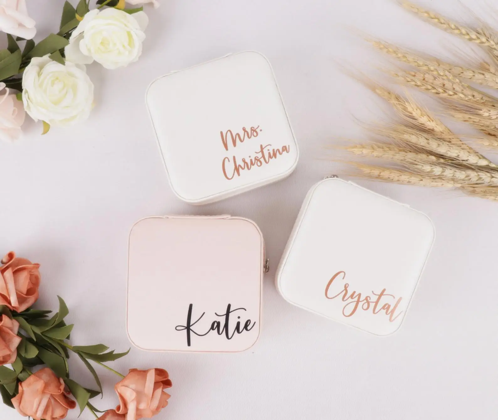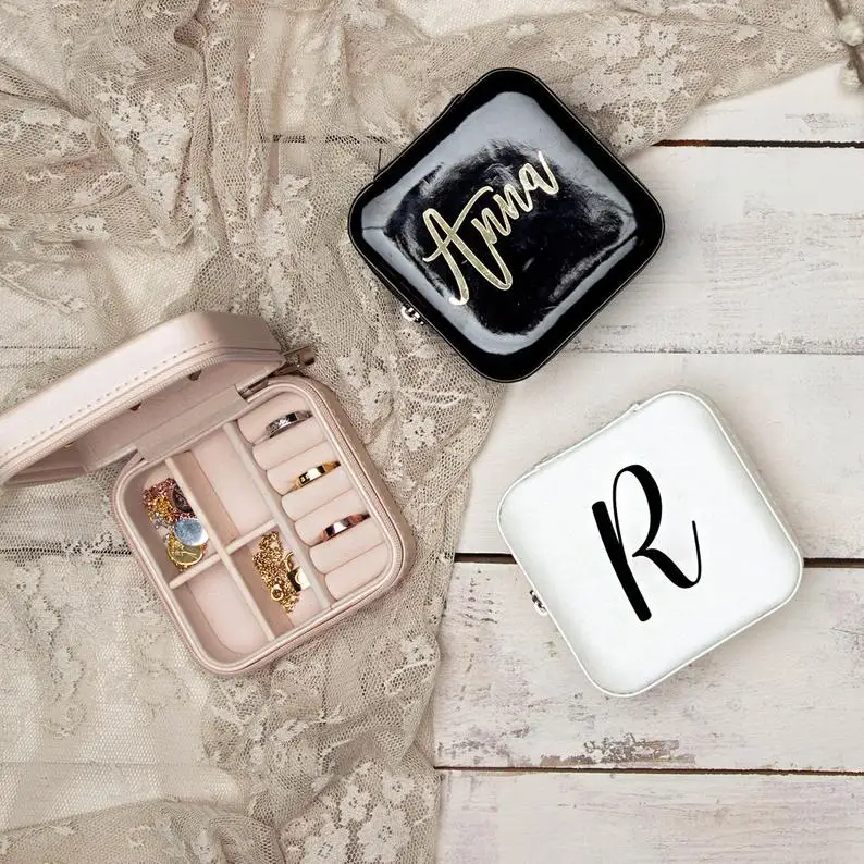 Персонализированные коробки для ювелирных изделий, коробка для подружки невесты, подарок подруге невесты, индивидуальный подарок для женщин, Дорожный Чехол для ювелирных изделий