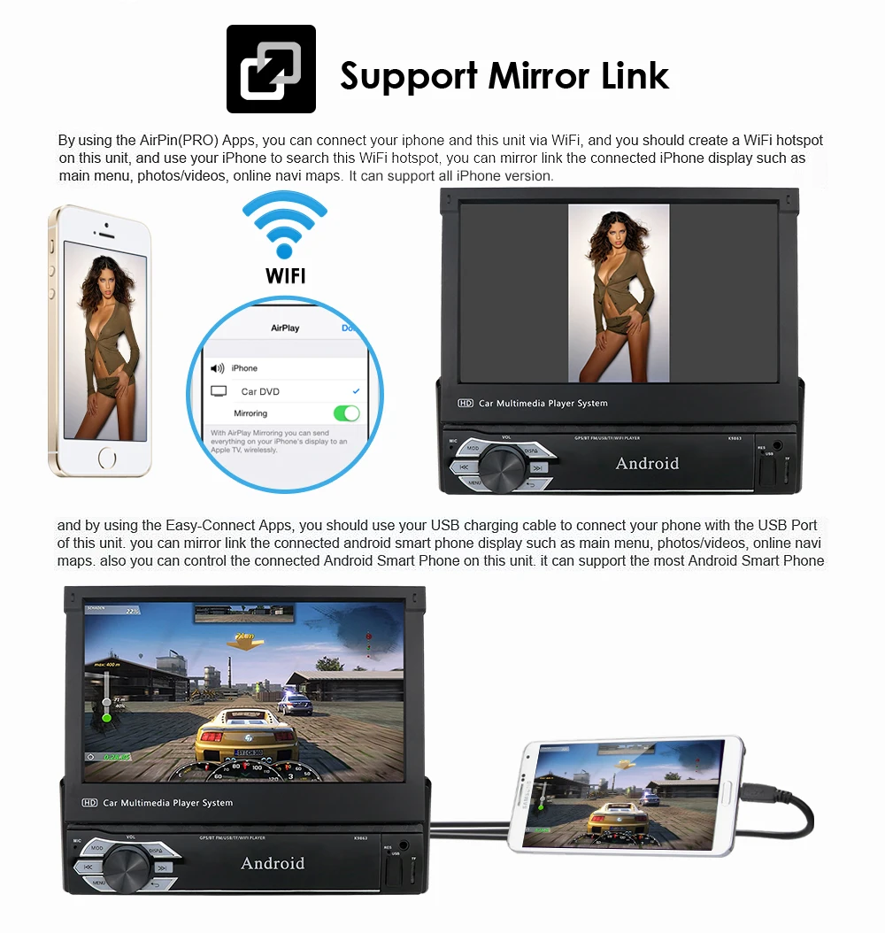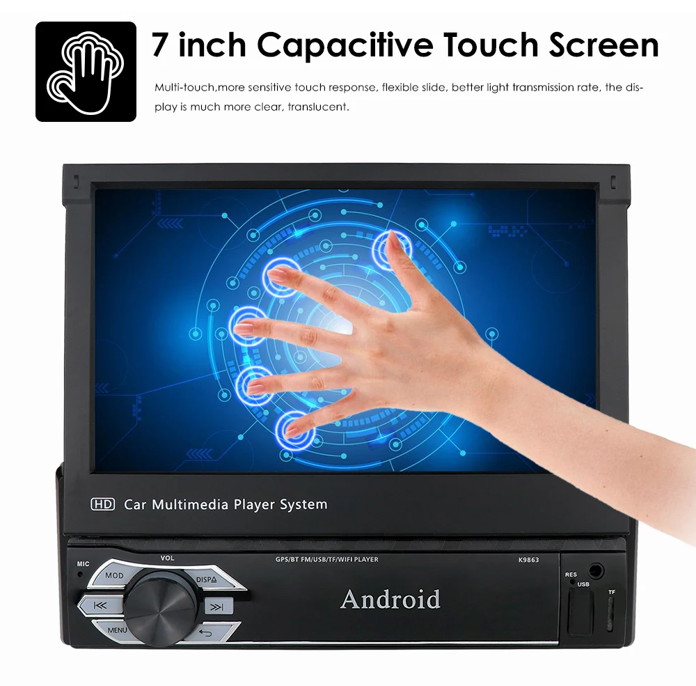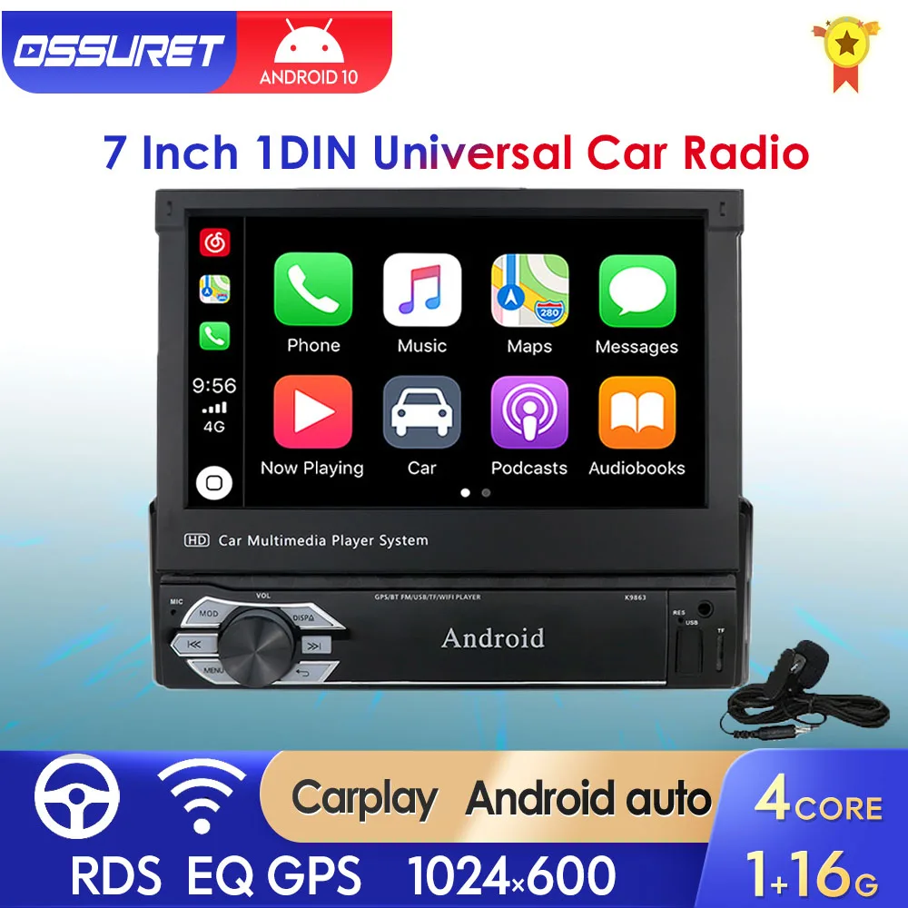 Мультимедийная магнитола для автомобиля, универсальная стерео-система на Android, с 7-дюймовым экраном, поворотный экран, Wi-Fi, GPS навигатор, Типоразмер 1 Din