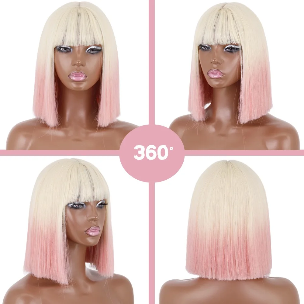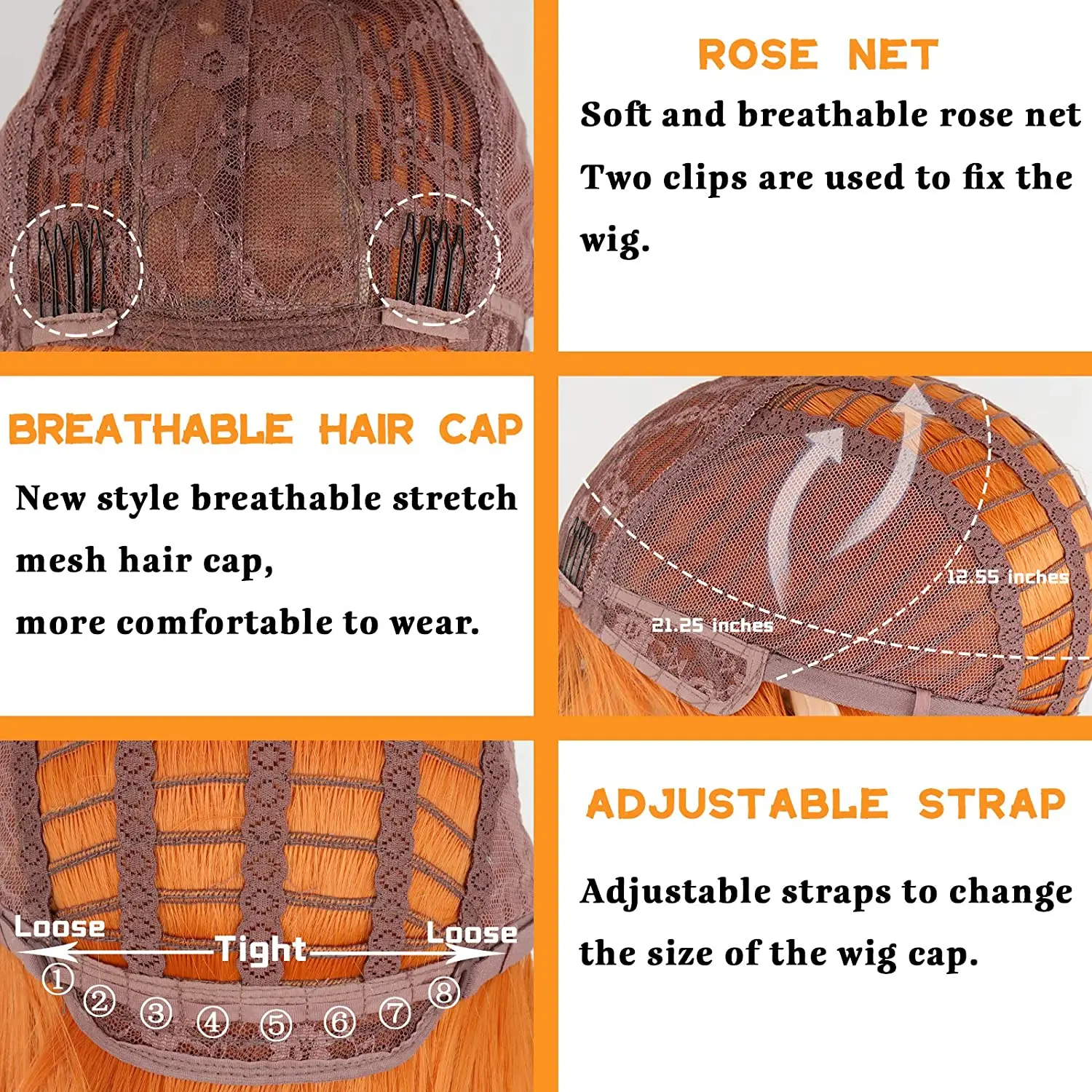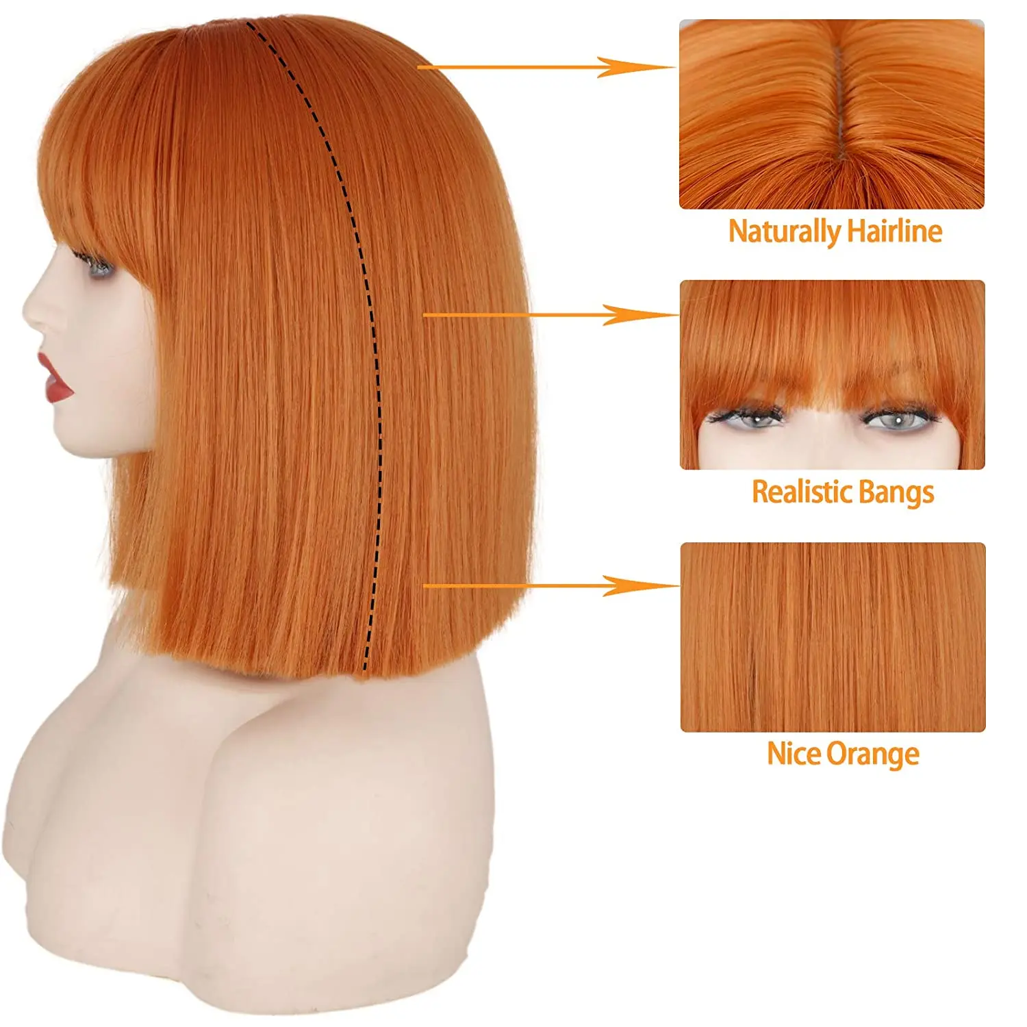 Парик короткий оранжевый с челкой, цветной, термостойкий, для косплея, для ежедневного использования