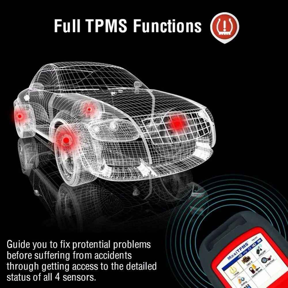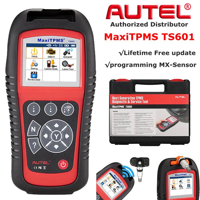 MaxiTPMS®TS601 является самым мощным диагностическим и сервисным инструментом TPMS в мире, способным полностью диагностировать проблемы TPMS, а также активировать датчики TPMS и перепрограммировать ЭБУ автомобиля. Этот профессиональный инструмент-лучшее решение для шинных магазинов и автомобильных мастерских для выполнения услуг TPMS!