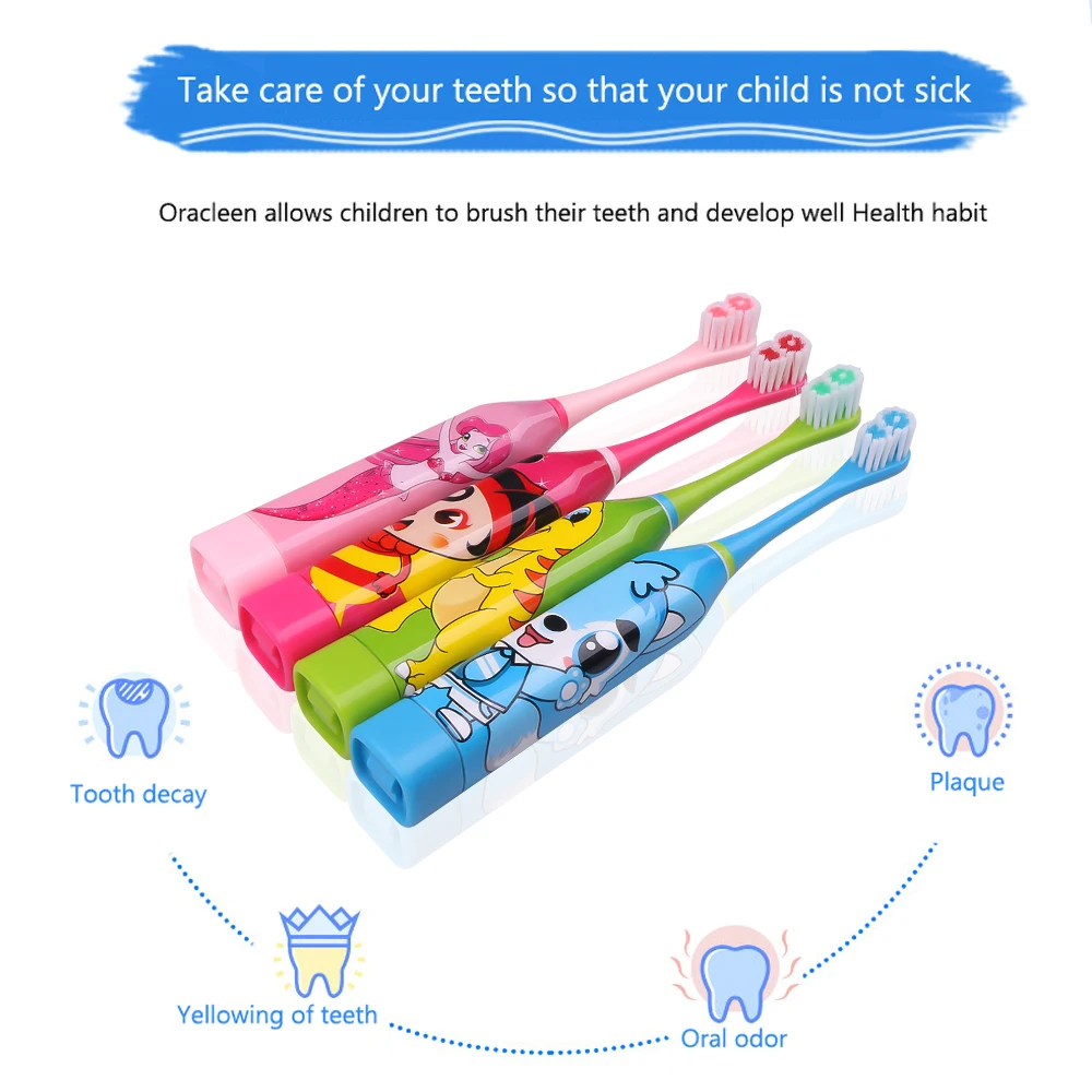 Особенности:1. Удалите зубной налет на 38% больше на электрической зубной щётке, чем на ручную, с превосходной чистящей способностью.2. Небольшая вибрация, вызванная высокоскоростным вращением электрической зубной щетки, может не только способствовать циркуляции крови во рту, но и привнести комфортные чувства к людям.3. Множество Супер милых мультяшных узоров, как в сказке.4. Используйте передовую мягкую щеточную головку для эффективной защиты десен, уменьшения повреждений и повышения безопасности и эффективности процесса чистки.5. Электрическая зубная щетка может эффективно уменьшить пятна, вызванные плохим состоянием полости рта, восстановить оригинальный цвет зубов, отбелить и украсить зубы.6. Головка щетки с автоматической высокочастотной вибрацией проста в использовании.Посылка:1 шт. машина для кузова2 шт. насадки для зубных щеток(Пожалуйста, обратите внимание, питание продукта от батареи, отправка без лести)