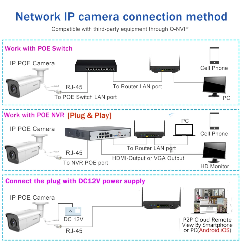 Поддержка ONVIF и H.264 +, вы можете обратиться к многобрендовому NVR, Поддержка питания DC12V и PoE, Оригинальная английская версия, поддержка неограниченного обновления, но вам нужно использовать обновленное программное обеспечение, которое соответствует.