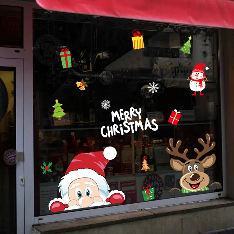 Рождественские наклейки с Санта-Клаусом 2021, наклейки на окна, стены, двери, пола, стеклянные наклейки, наклейки сделай сам, декор для рождевечерние для дома, новый год
