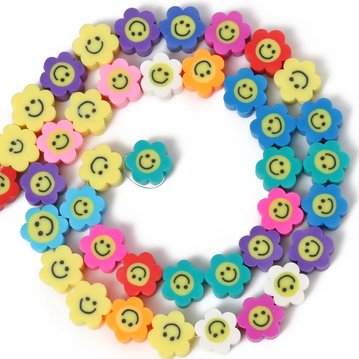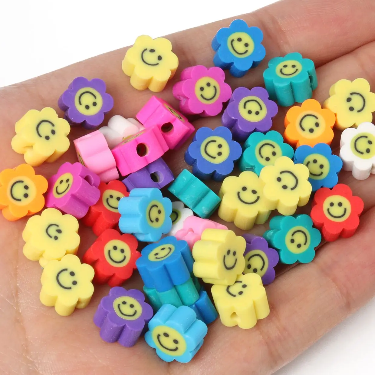 50 шт. разноцветные бусины из полимерной глины в виде смайлика подсолнуха, свободные бусины для изготовления ювелирных изделий, аксессуары для ожерелья и браслета своими руками